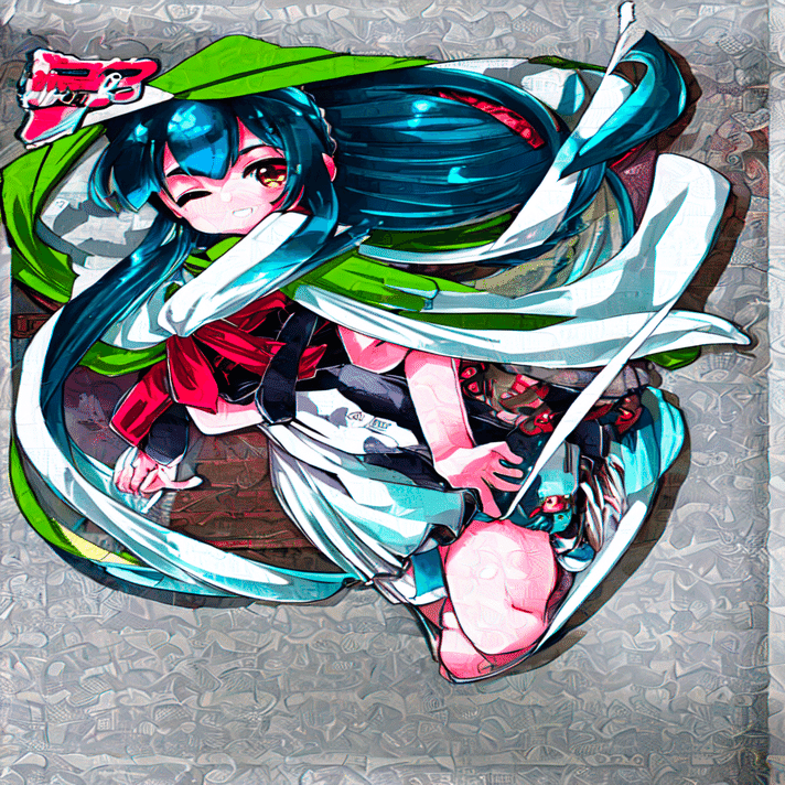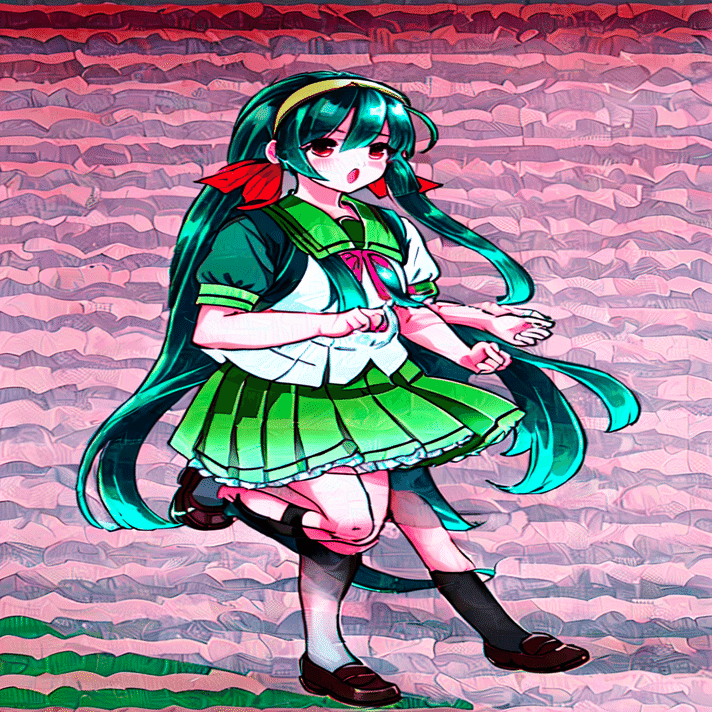 ノイズが大幅に入りました。また、髪の色、目の色、緑のヘアバンドなどの情報はとらえられていますが、ずん子っぽさでいうと、再現性が多少落ちたかもしれません。