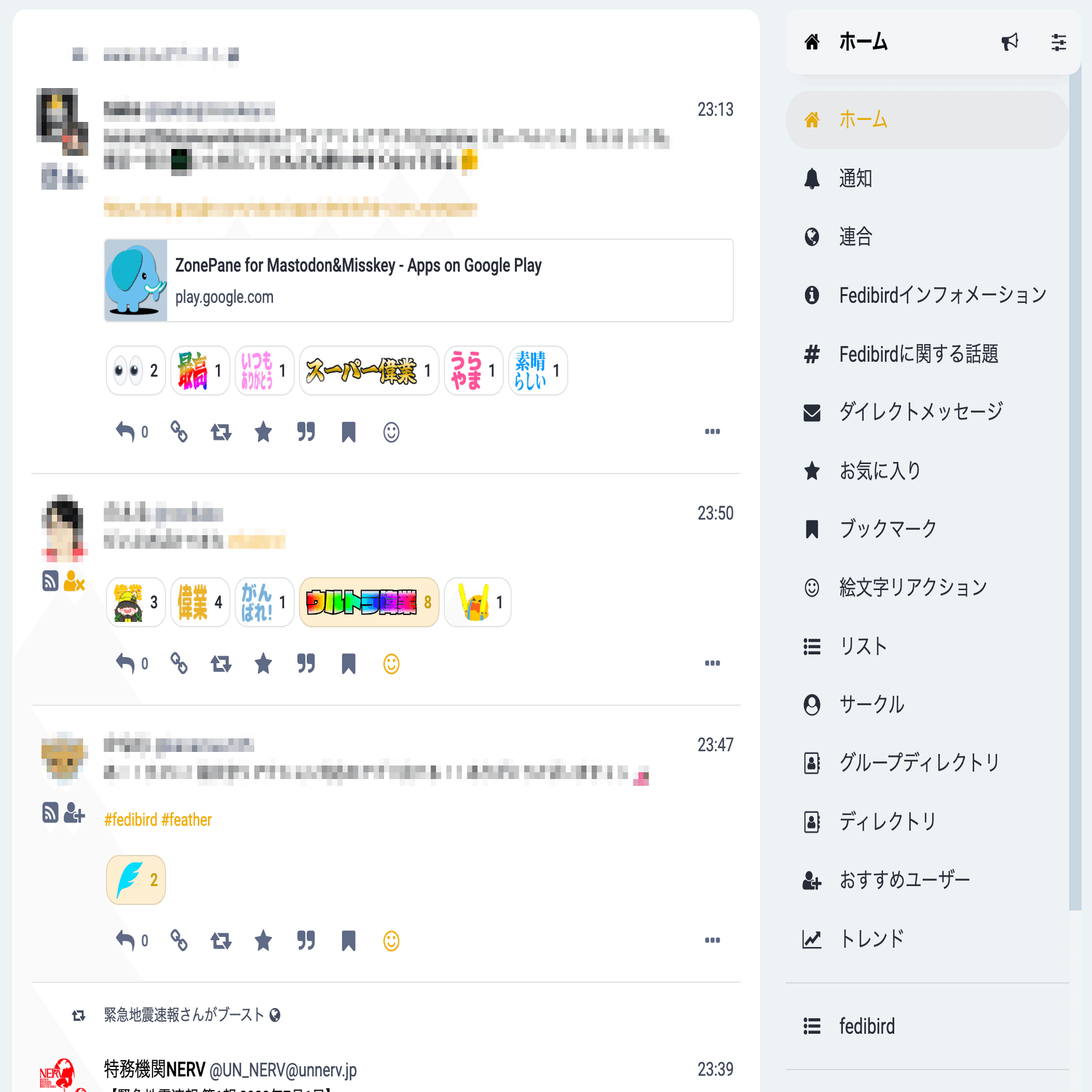 以上が、MastodonおよびFedibirdの独自機能によるタイムラインの紹介でした。