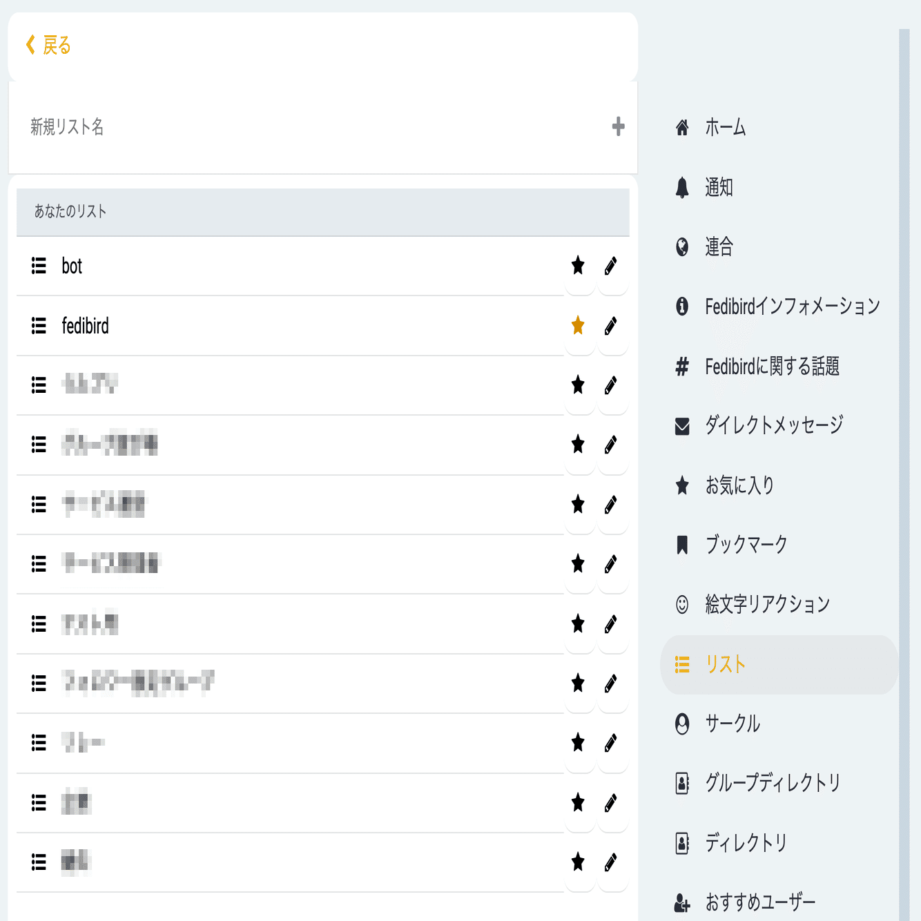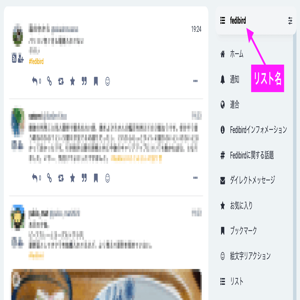 リスト「fedibird」がメニューに表示されました。
