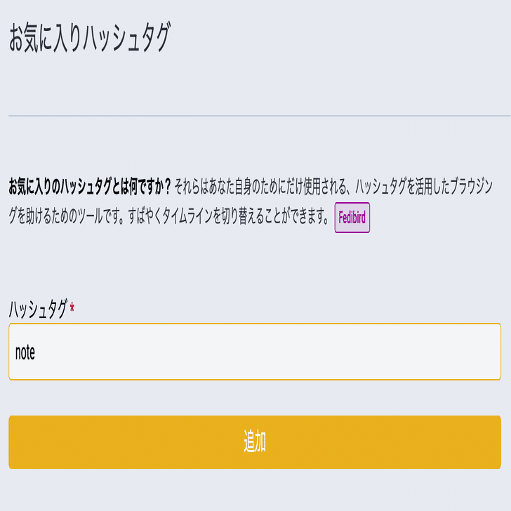 例えば #note を登録する場合、入力欄に note と入力し、「追加」ボタンを押します。