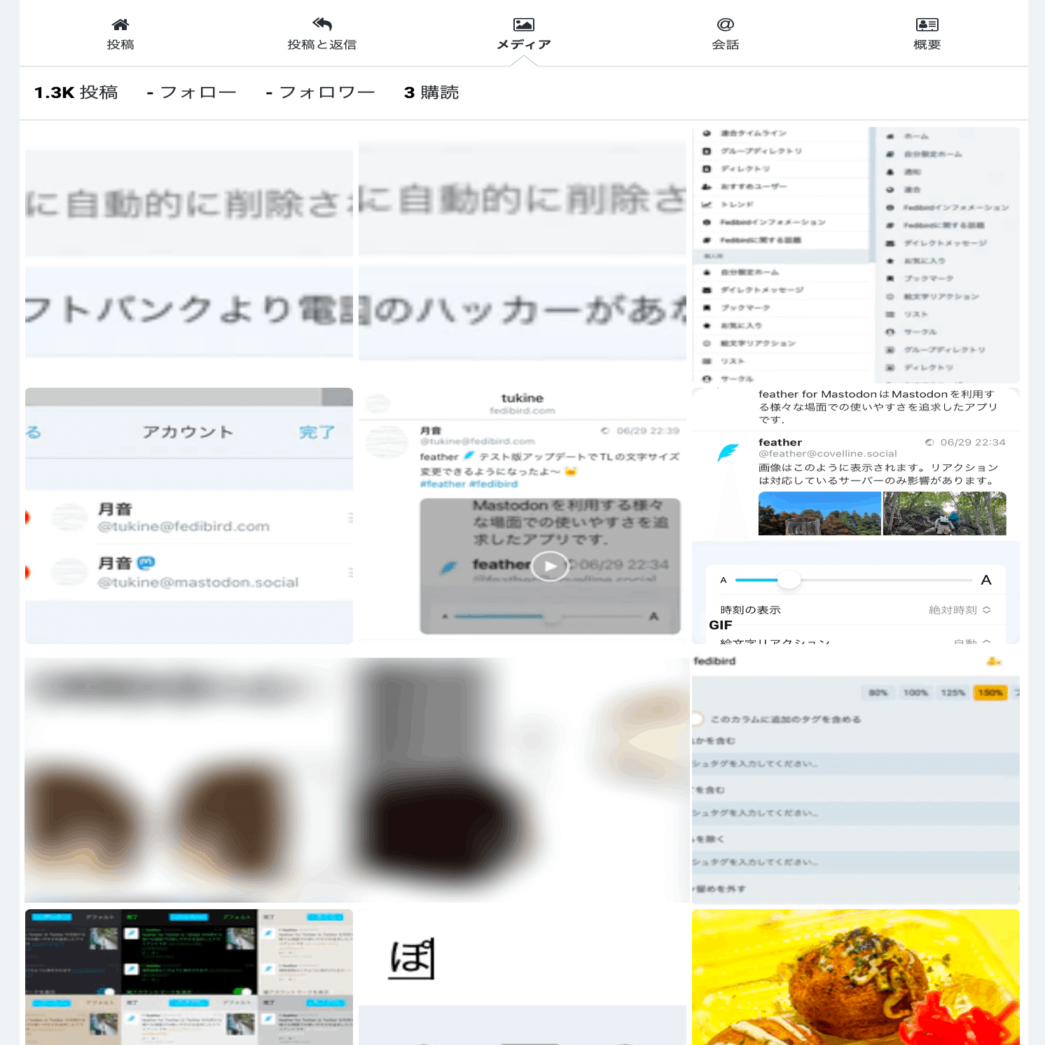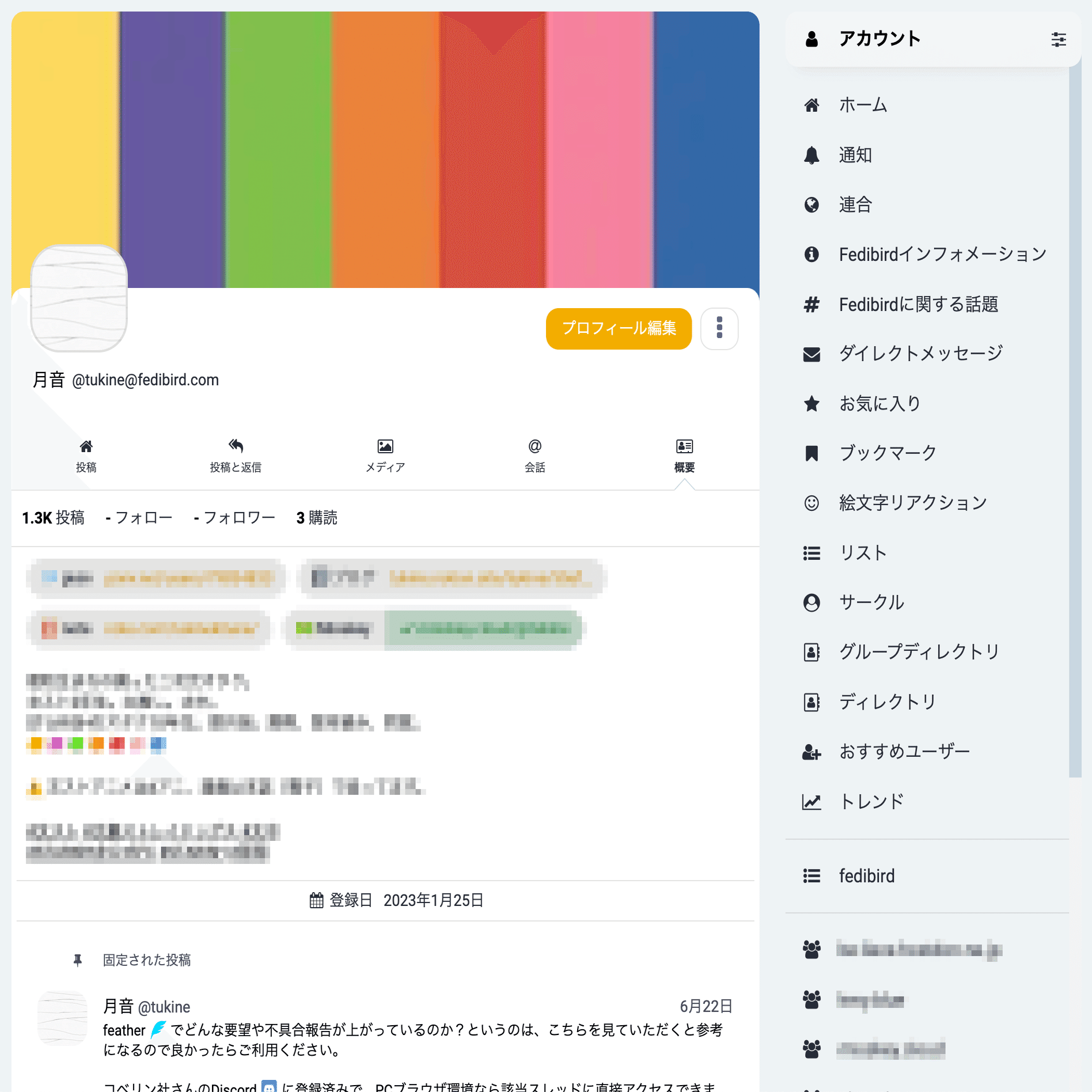 Fedibirdのアカウント画面内では、