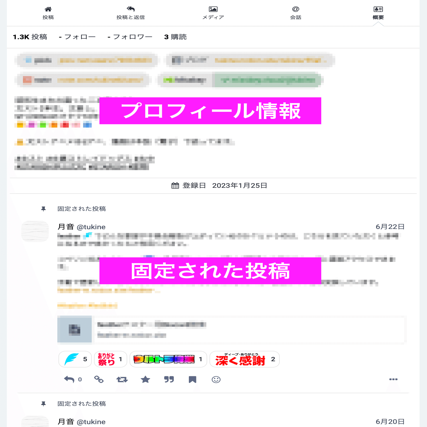 固定された投稿があれば、それも表示されます。