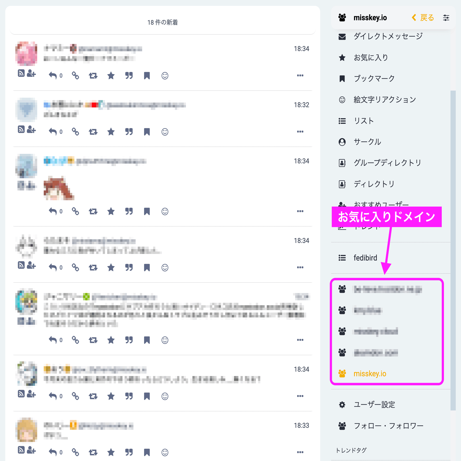 するとメニューに追加したドメインが表示され、ここからドメインタイムラインを開くことができます。