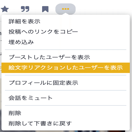 投稿の下に並んでいるアクションメニューの右端にある「…」を押してメニューを出します。