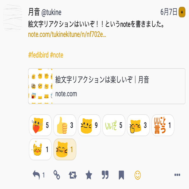Fedibirdでは、1つの投稿に対して絵文字リアクションを一人2つまで送ることができます。
