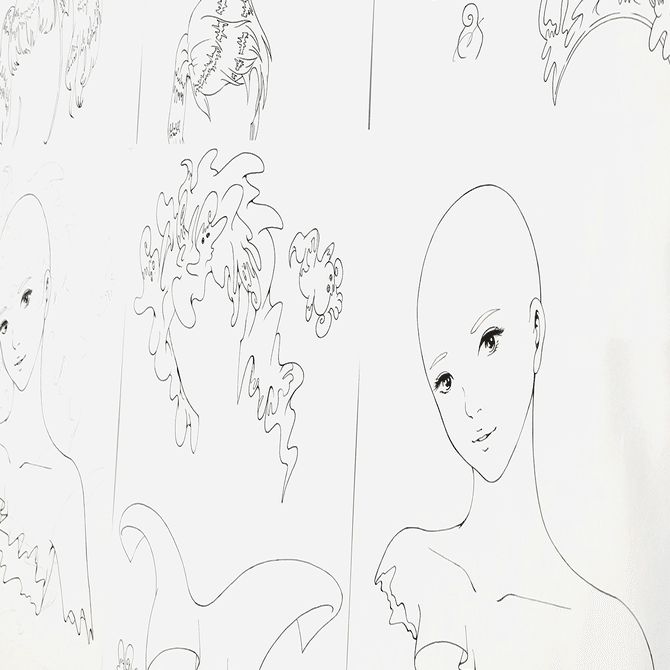 アウトラインはペンで手描きしたものをスキャンし、デジタル着色している。