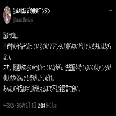 反AIの襲撃は、ナウル事件のように何も罪がないのに雰囲気で謝罪したり、ローソン事件のように依頼主や出版社が「よく分からんけどなんか騒ぎになったので消す」という事なかれ主義的な態度を取った時にしか勝ち筋がない、という点に留意すべきである。