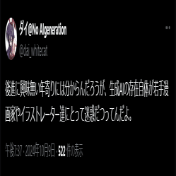 「5ヶ月ぶり2回目」と書いたが、すがやみつる氏が最初に反AIに焼かれた2024年5月以降、氏に対する反AIからの誹謗中傷は、ほとんど日常的な物になっている。