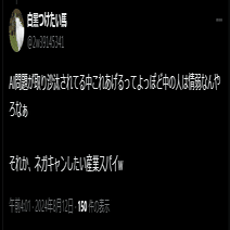かつて、AIイラスト採用例がごく少数だった頃は、反AIも全ての事例に食い付いて丁寧に焼く事ができていたが、最近は採用例が多すぎて、反AIの襲撃が雑になってきている。