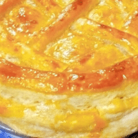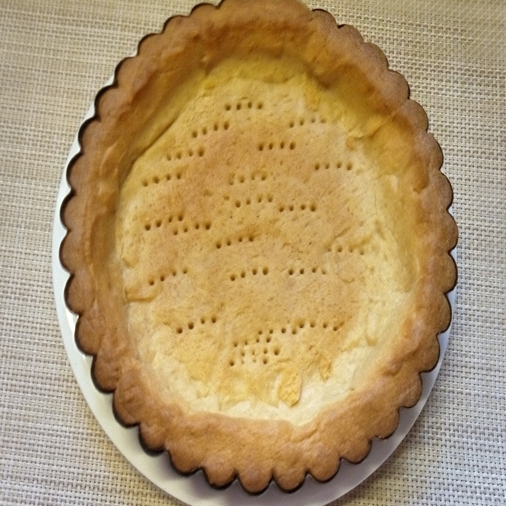 出してバターと小麦粉をふってあるタルト型に入れ、フォークの先で穴をあけ、200℃のオーブンで20分焼く。