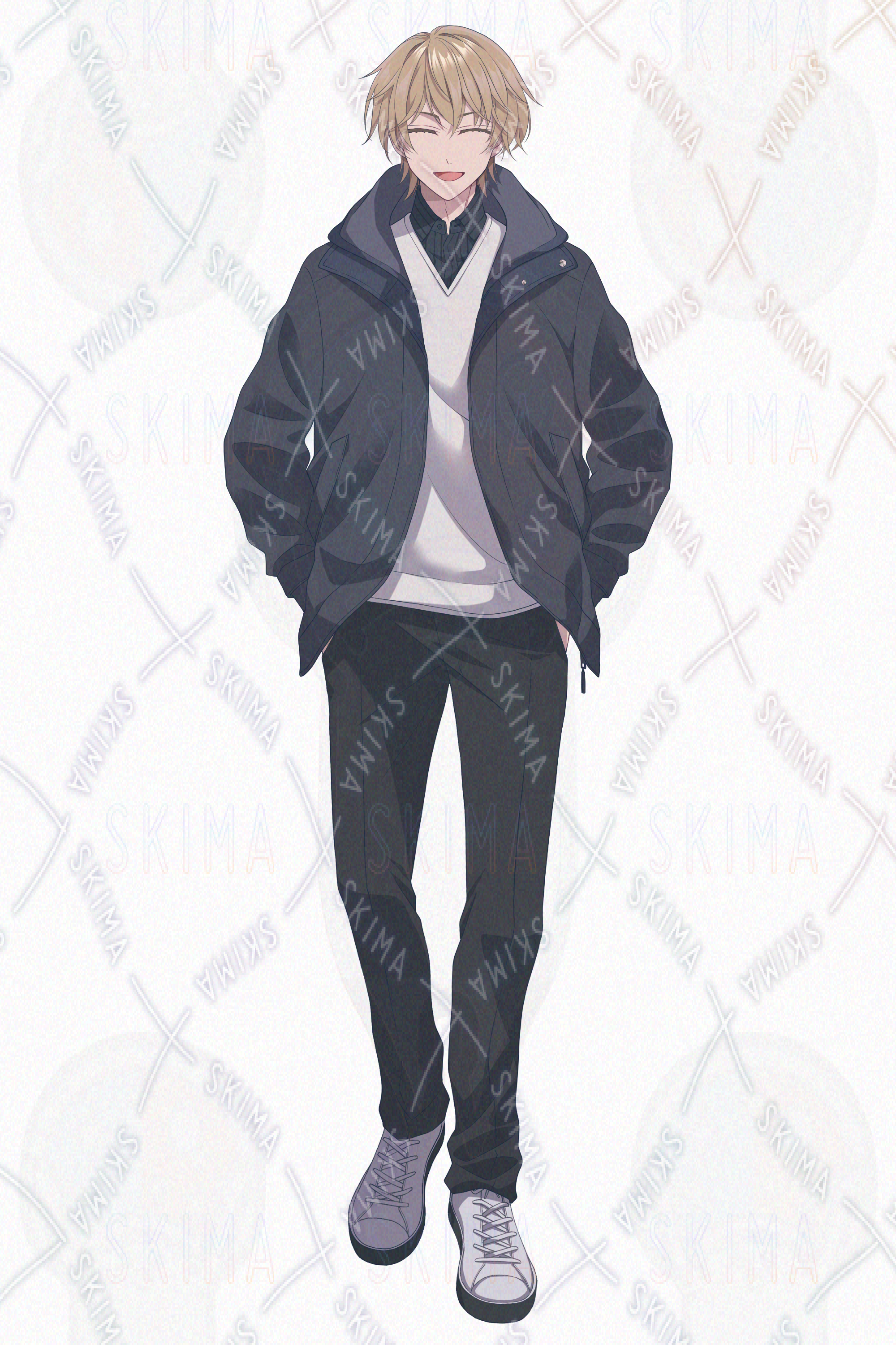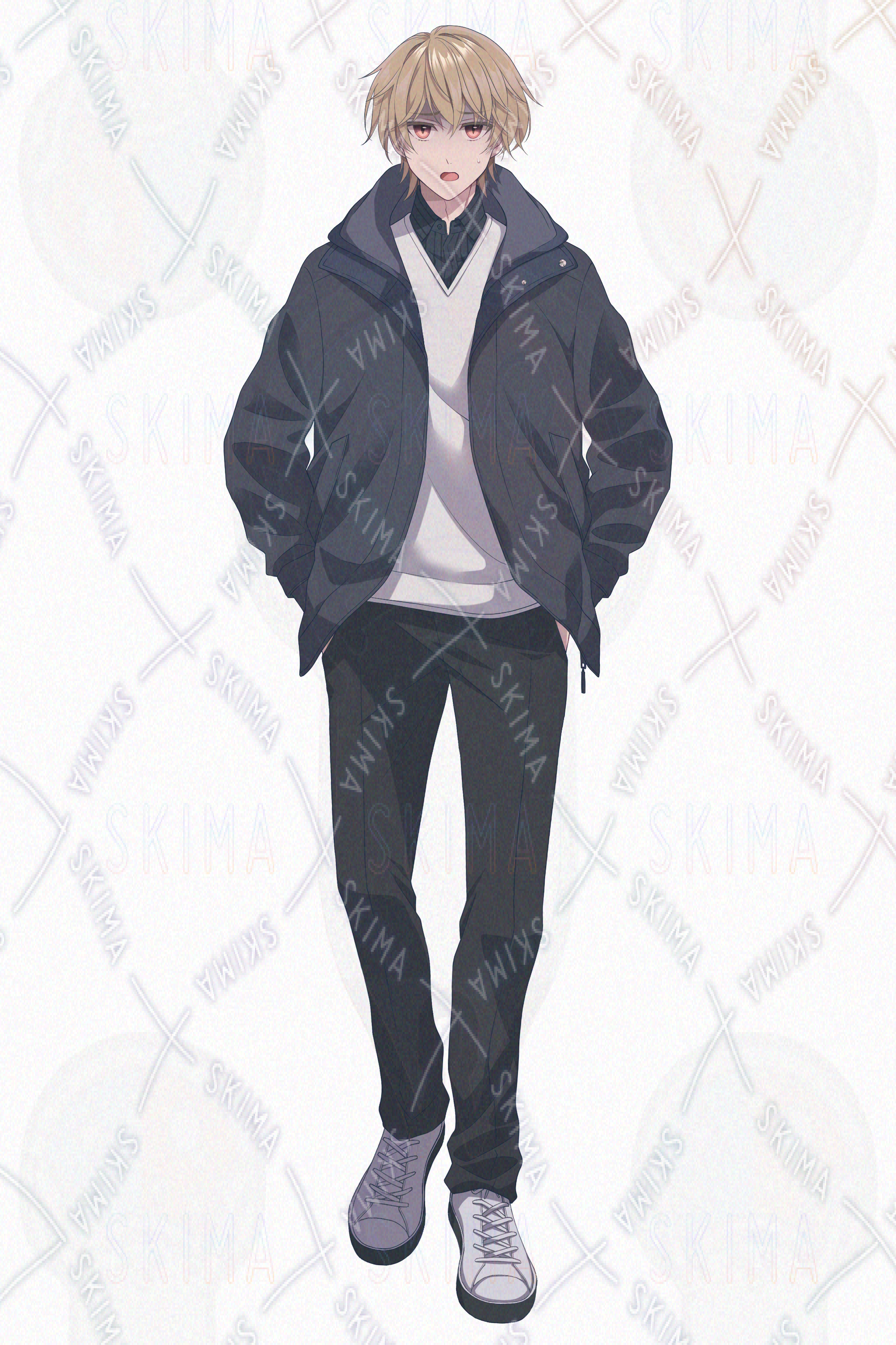 少年、男の子、男子、マウンテンパーカー、ブルゾン、私服、ジャンパー、正面、大学生、高校生、中高生、茶髪、金髪、男子高生