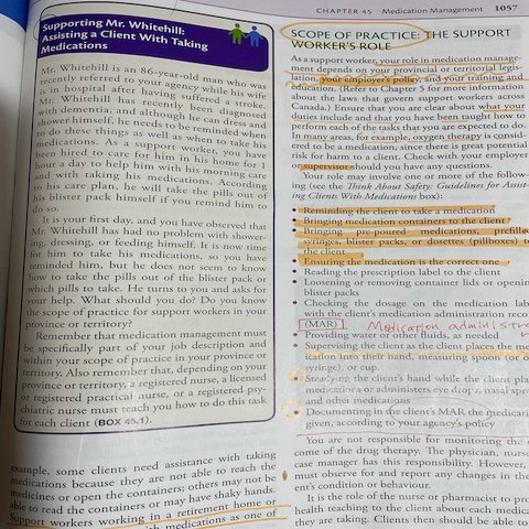 内容はなかなかいいと思います。看護師のテキストを土台にして作られていて、看護学校で学んだことと似たような内容。HCAでこんな専門的内容いる?っていう部分もあるけど、こちらの病院のHCAは患者の状態観察や点滴ラインのチェックなども行うことがあるらしく疾患や点滴の観察ポイントについても勉強させられる。また、一般に病院や施設では許されない医療行為(投薬、褥瘡処置など)もHome Careでは行うこともあるため、実に細かく書いてある。清潔、安全、コミュニケーション、褥瘡予防などなど日本のスタンダードとほとんど変わらないのに、実際現場に行くと「In the reality」連発。