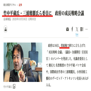 菅義偉の元上司:竹中平蔵。