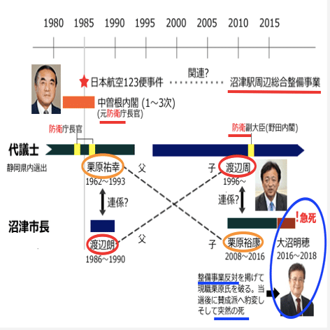 123便事件の場合、同機遭難の地に巨大な揚水発電のダムが建設され、その予算は公称4,800億円でしたが、プロの目(元建設官僚)によればざっと4~5兆円の資金が投入されただろうとも言われます。つまり、表資金のおおよそ10倍の金が動いたと思われる訳で、これを沼津に当てはめれば、駅前再開発事業は2兆円前後の