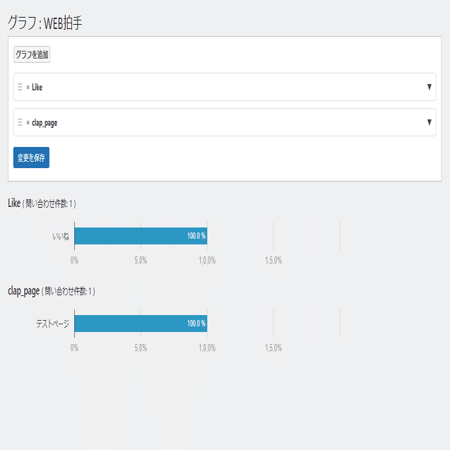 その上で問い合わせデータでグラフを表示すると、ページタイトルといいねの数が分析データとして表示されます。