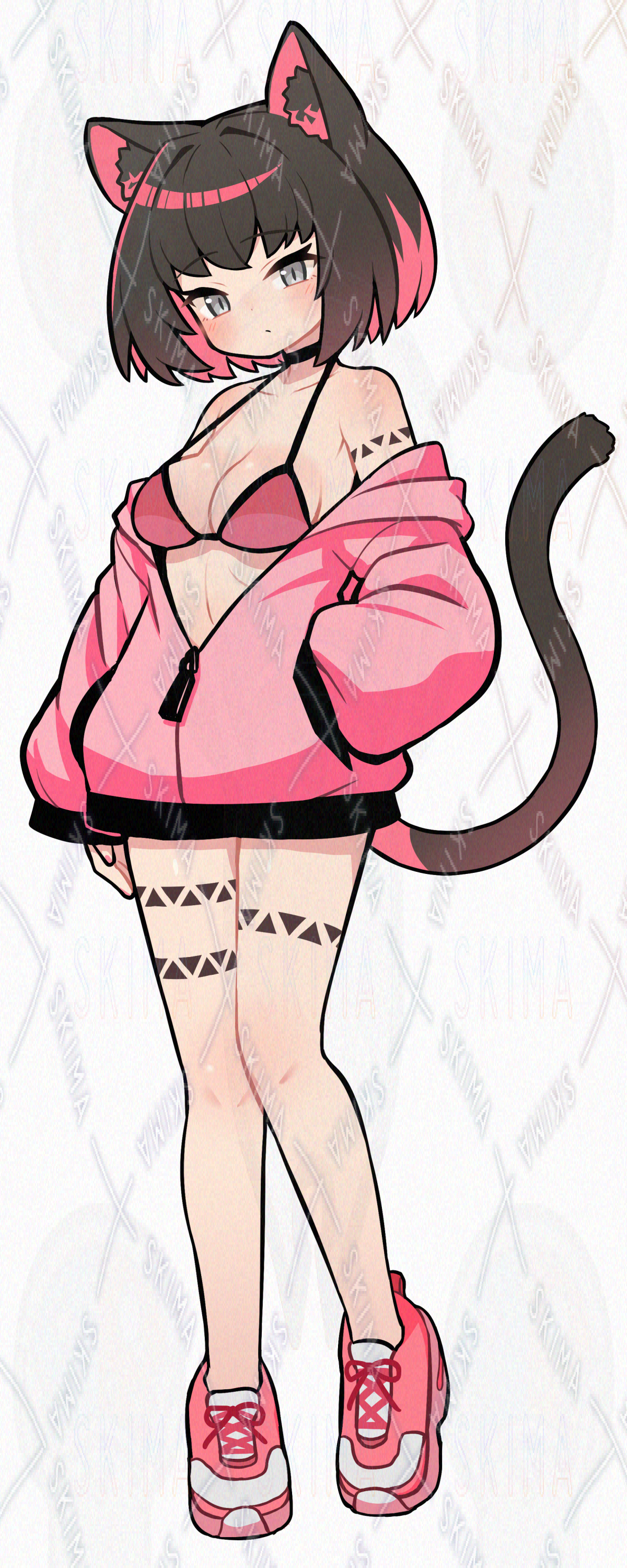 ビキニパーカー黒猫【表情差分9種+顔影パーツ】
