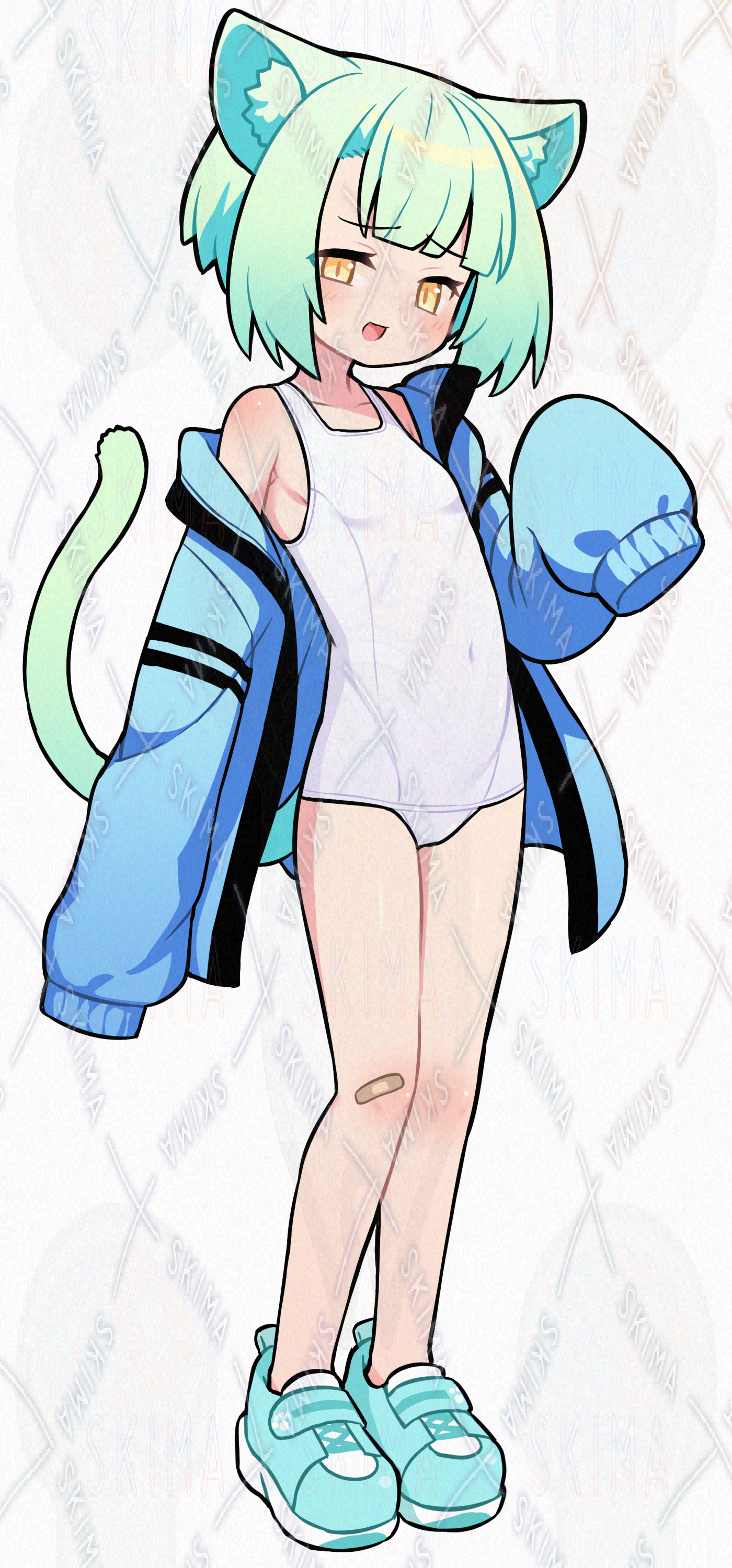 スク水ジャケット緑猫【表情9種+顔影パーツ】