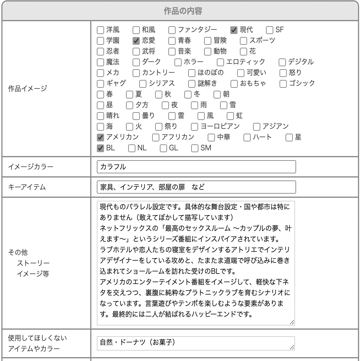で、……恋愛メイン……BLで……舞台設定は国籍不明都市……一応現代ものっぽい……? ふやふやすぎる。書き手としてはストーリーより軽快なテンポとかセリフ回しとかを喜劇的に楽しむ、っていうコンセプトがあったので、言い訳くさいけどそういうことを盛り込んでみました。