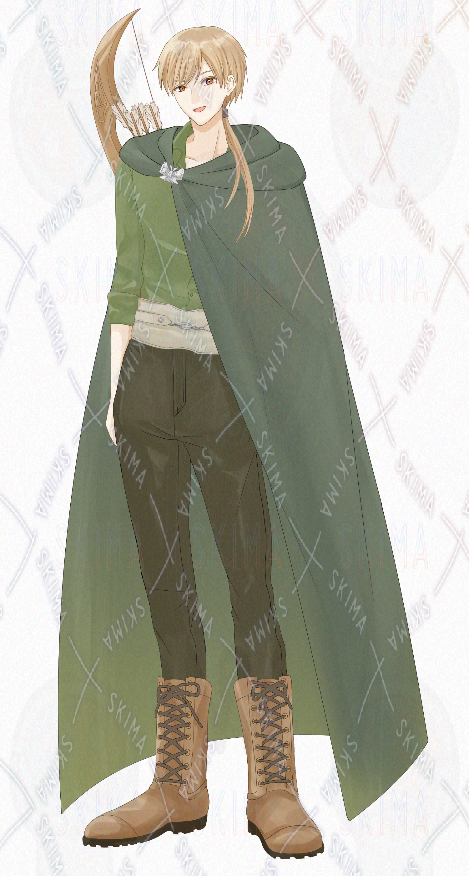 立ち絵、表情差分、男性、長髪、金髪、弓矢