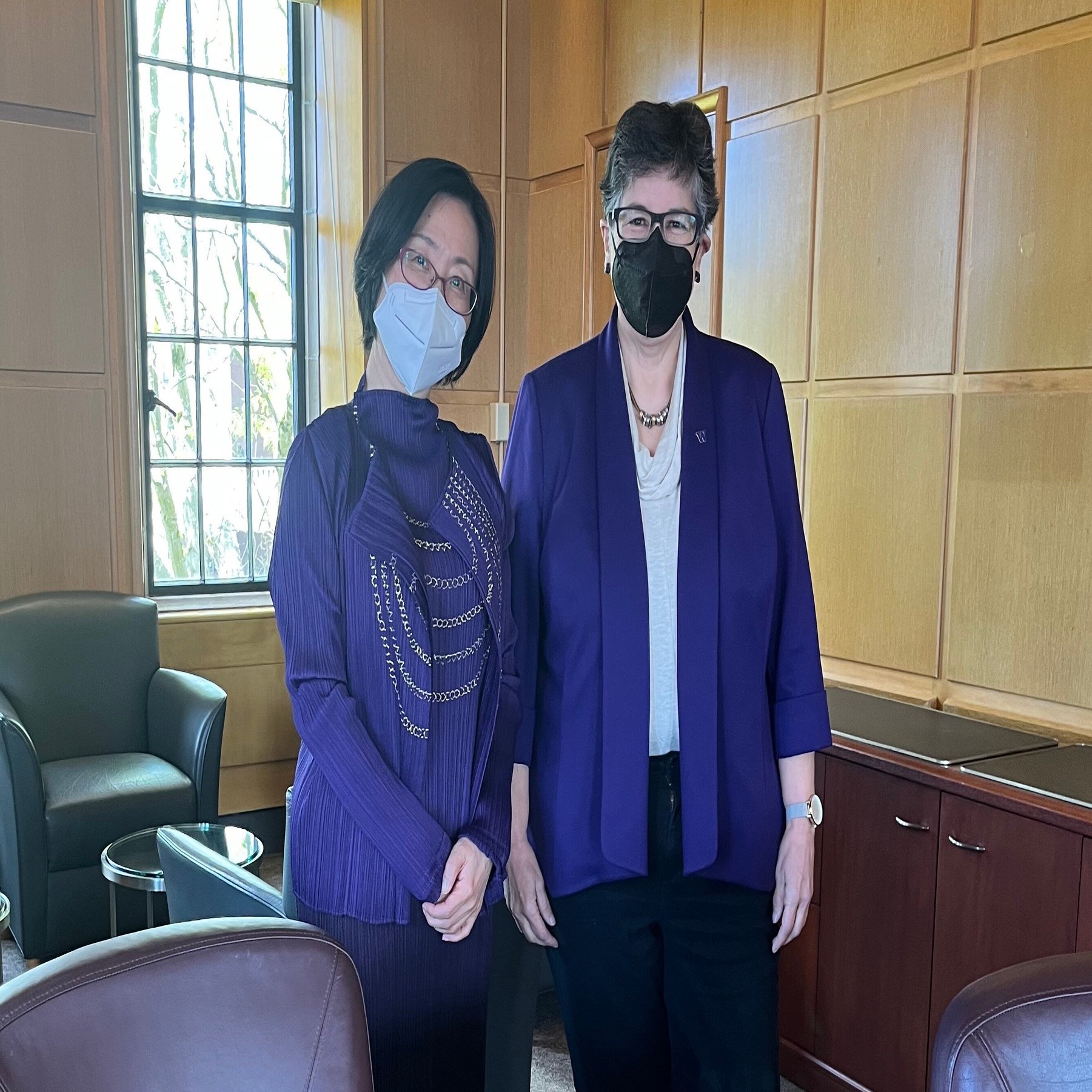 ●ワシントン大学:東北大学が連携協定を結んでおり、今回は「東北大学ダイバーシティ・エクイティ&インクルージョン推進宣言記念シンポジウム」に学長のAna Mari Cauce先生にビデオメッセージをいただきたい、というお願いのための表敬訪問を行いました。その前に図書館副館長の先生にもお目にかかりました(画像を取りそこねました……)。