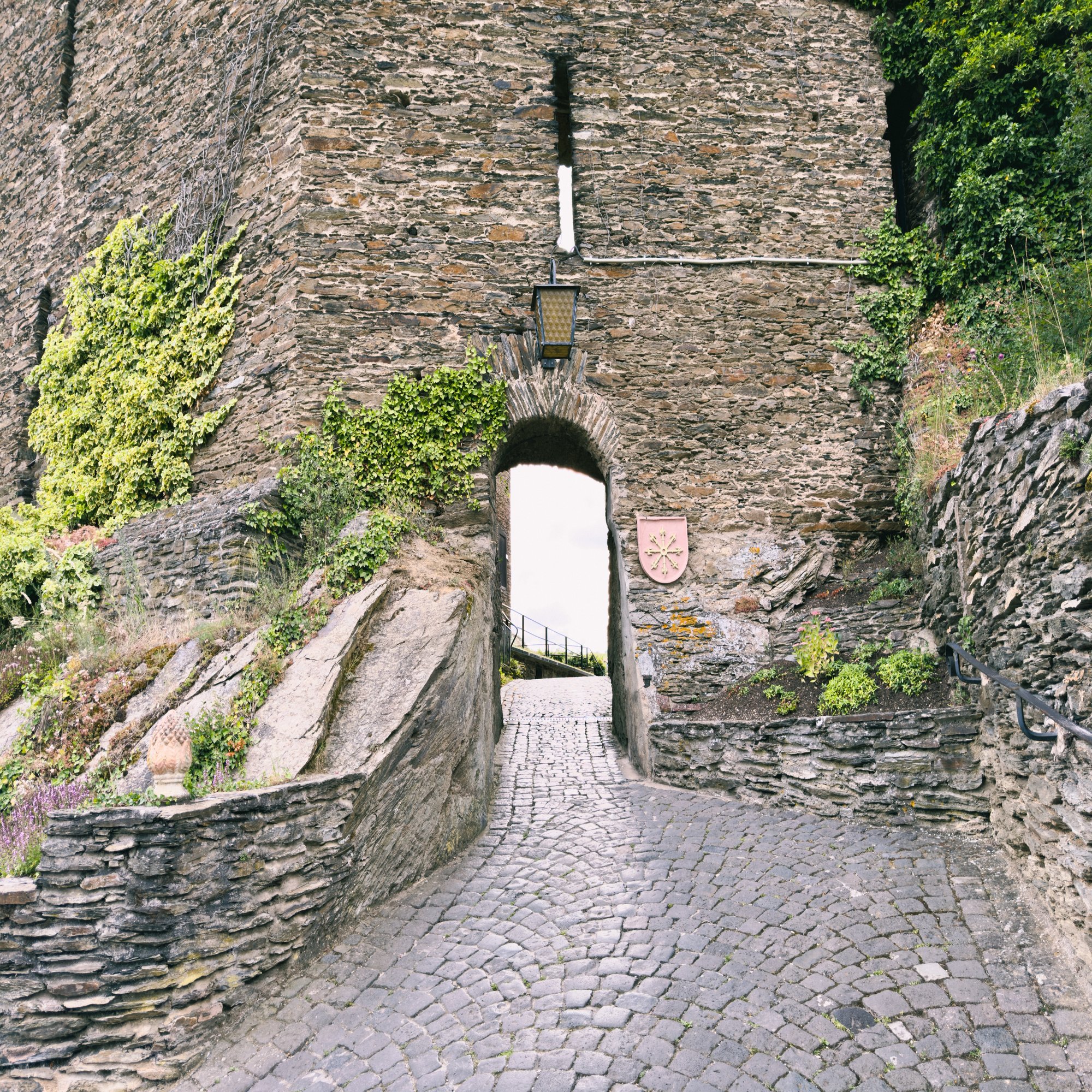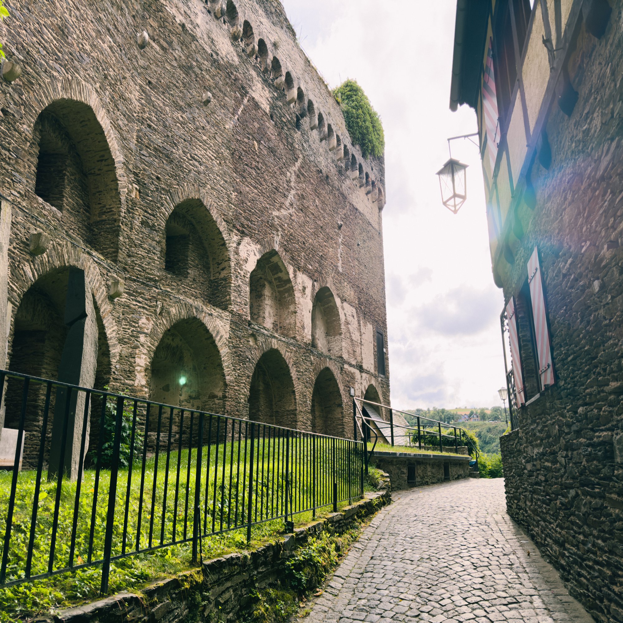 城をぐるりと囲うような細い道を登って……
