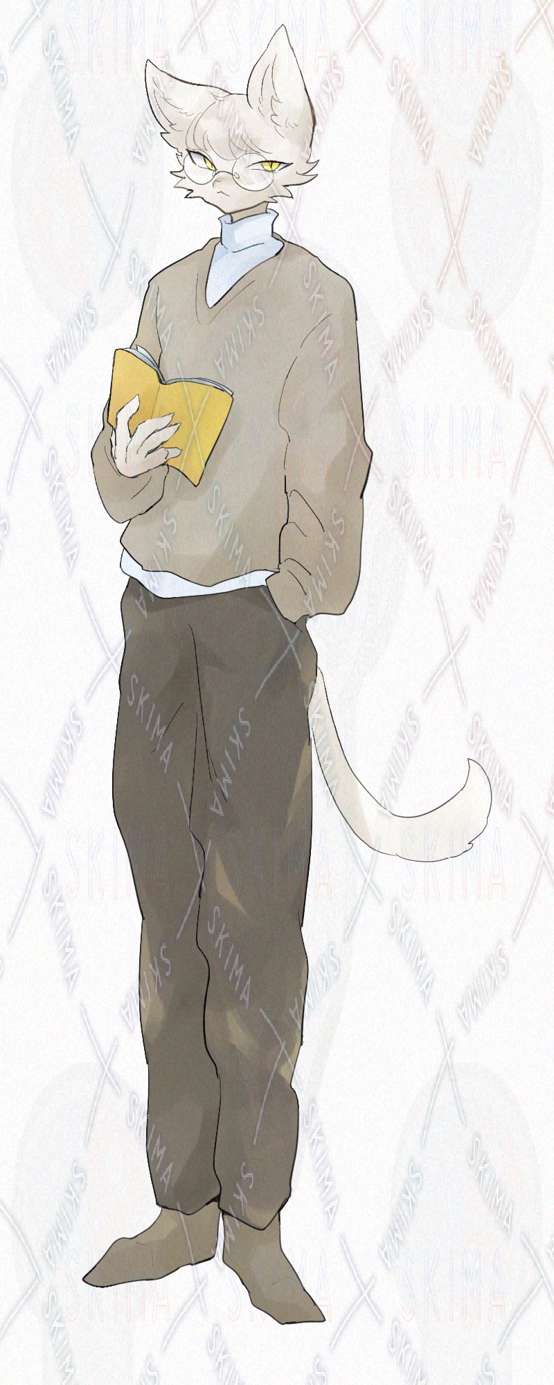 読書好きそうな眼鏡をかけた猫の獣人さんです。
