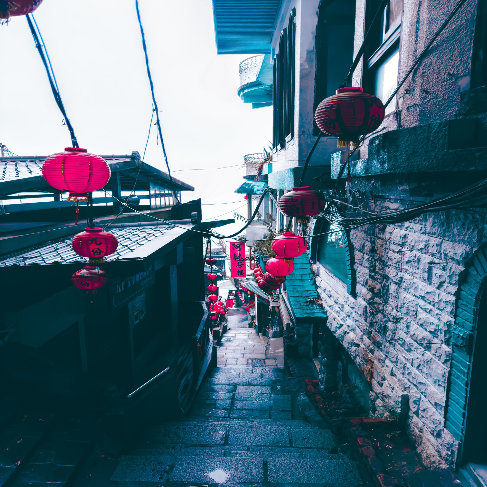 雨がとても多い街で、朝方は薄い霧が掛かることも多いらしく、そんな中で提灯がとても鮮やかでした!