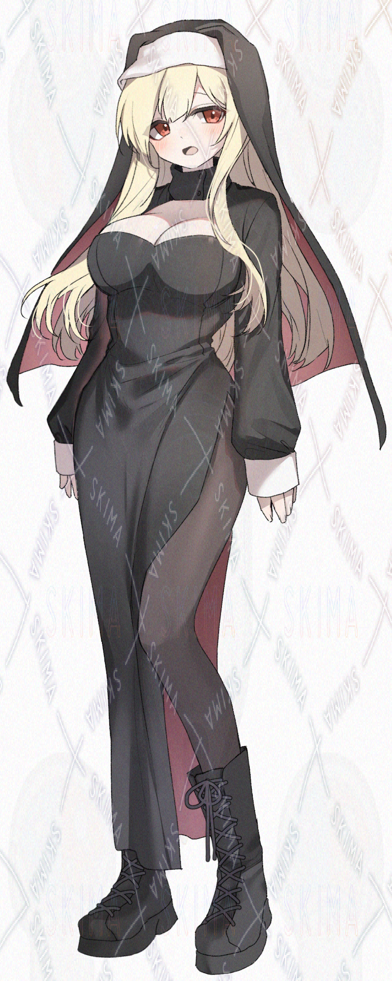 金髪ロングヘア、修道女な女の子です。キャラ設定はご自由に。