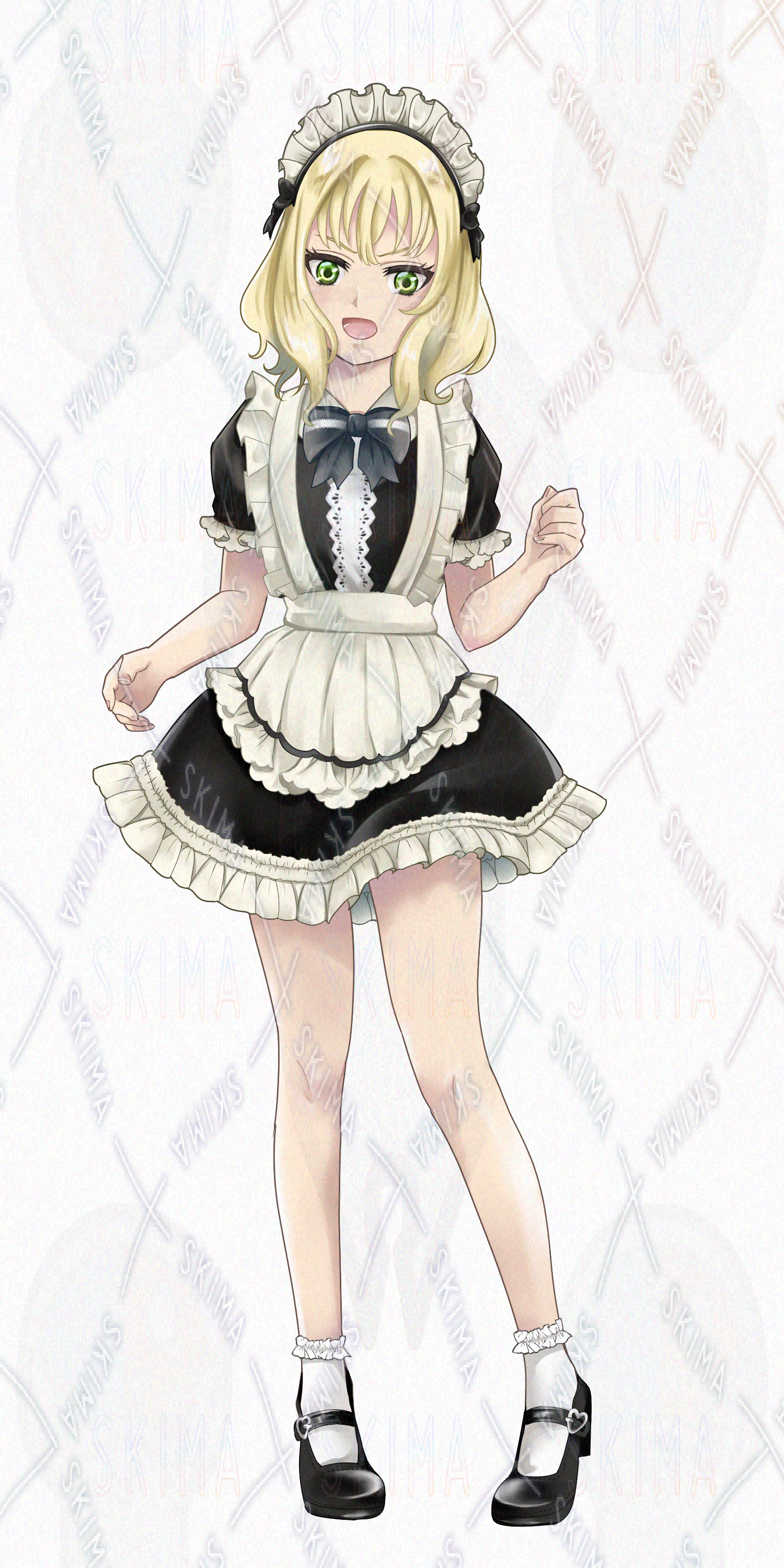 猫モップを持ったメイド服を着た女性