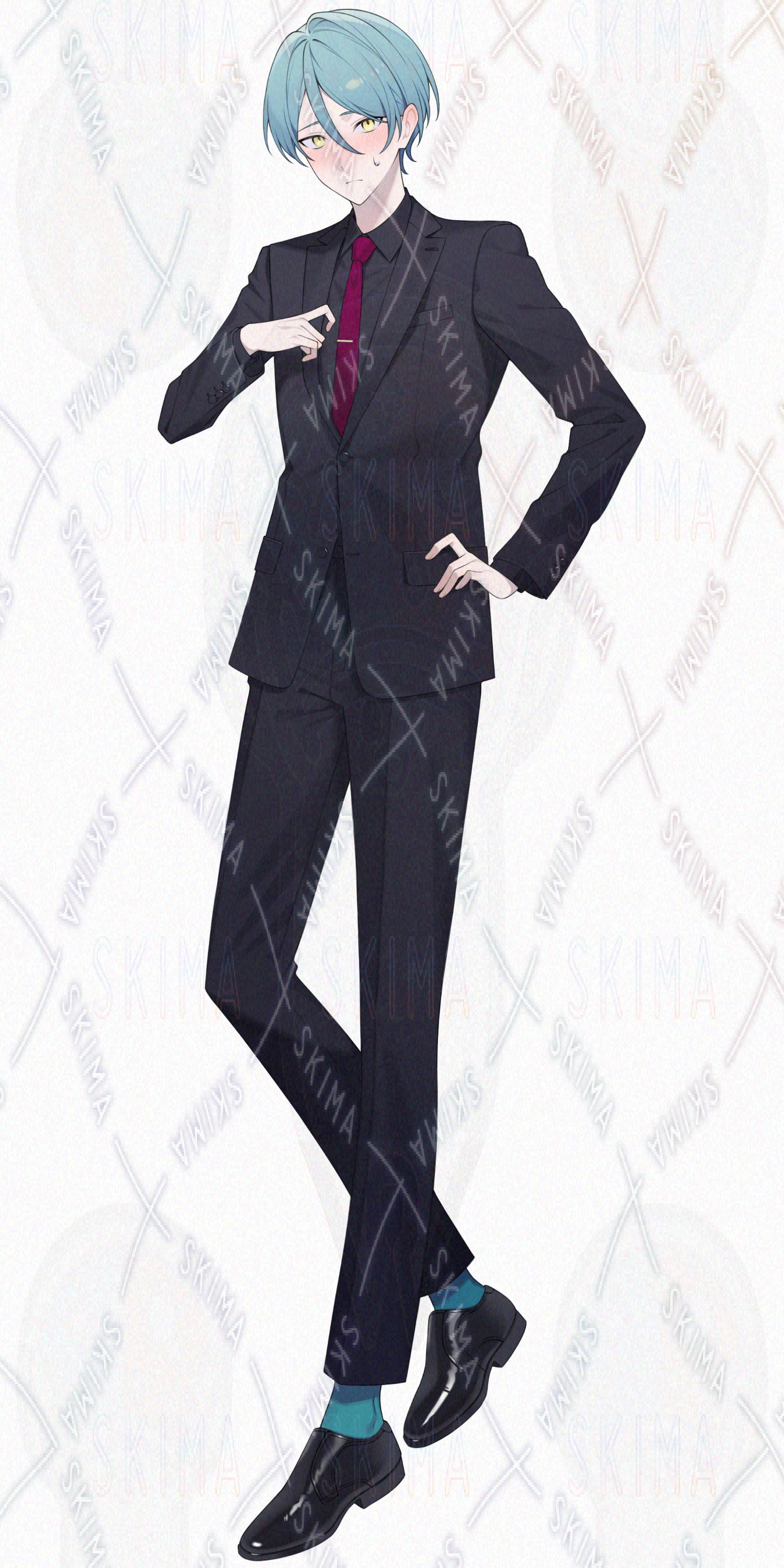 水色髪/黄色目/スーツ