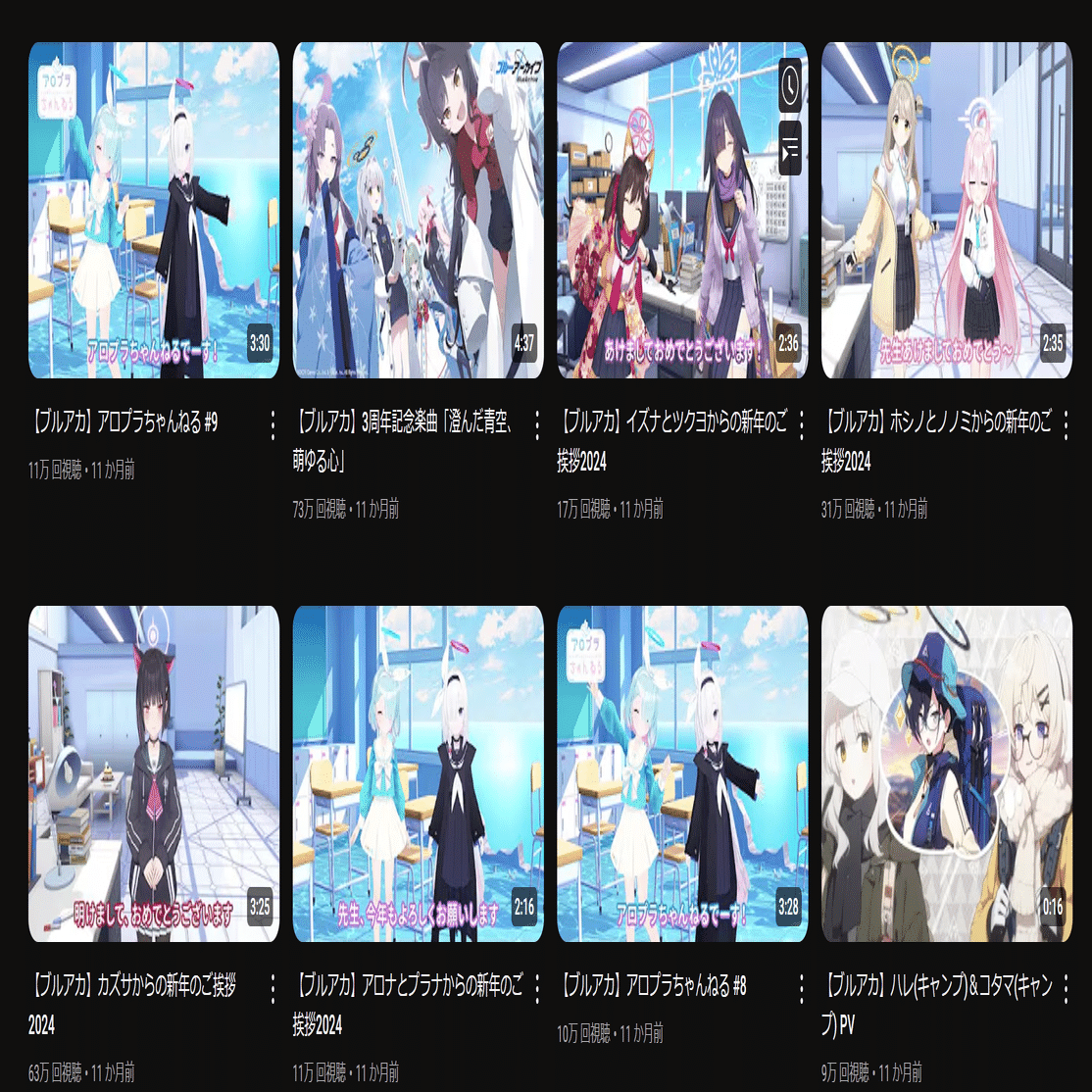 あけましておめでとうございます、ということでブルアカ公式のyoutubeが更新されていましたね。きっと2025年もそれなりの数が出てくるでしょう。