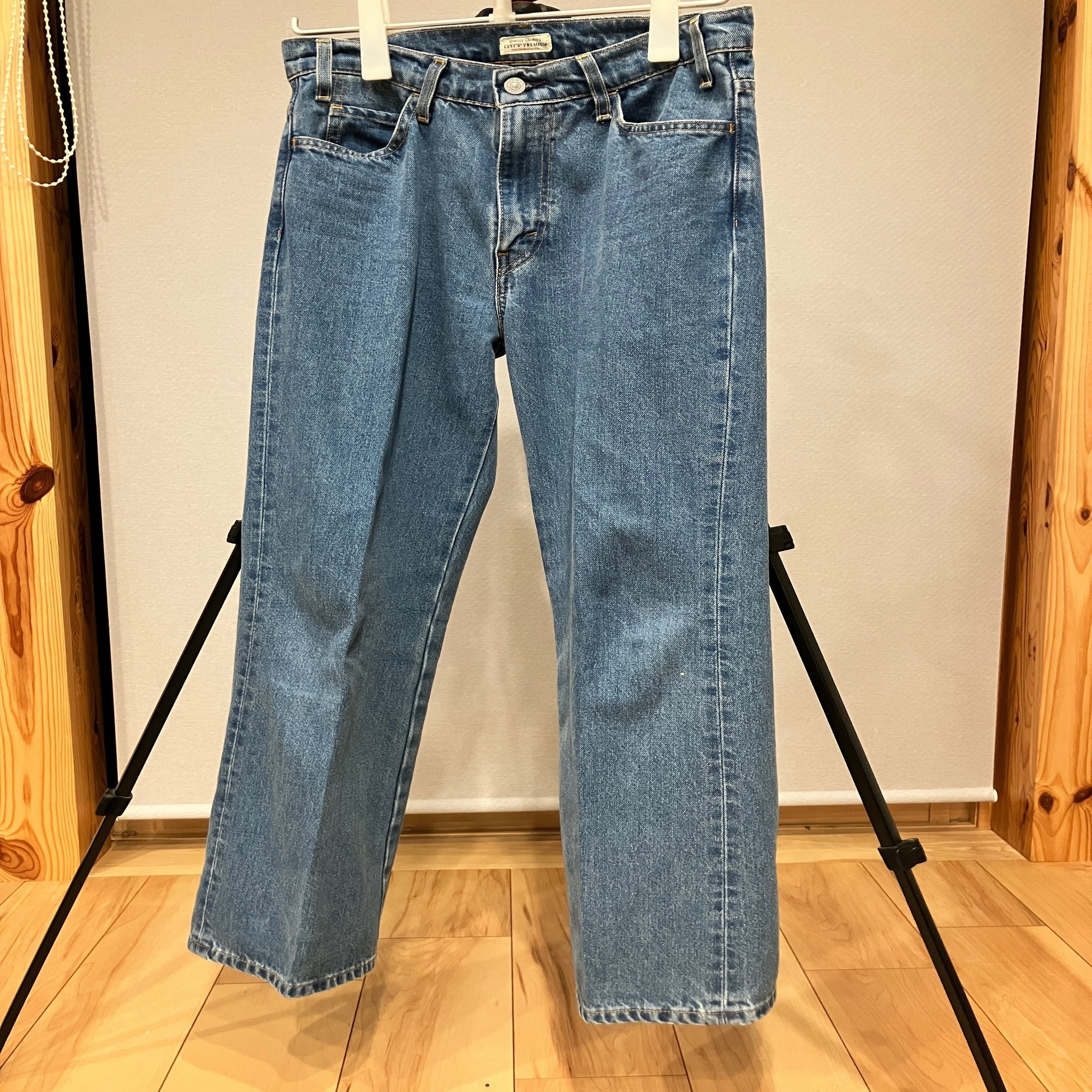 スタプレ。クリースが洗濯乾燥しても取れないという触れ込みのこれ。生地の厚さはユニクロ以上501未満で重厚なクリスタセヤに対してかなり軽快な履き心地。