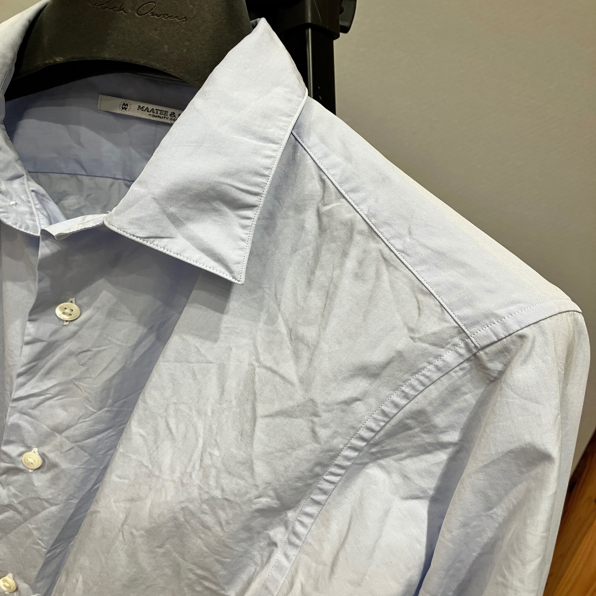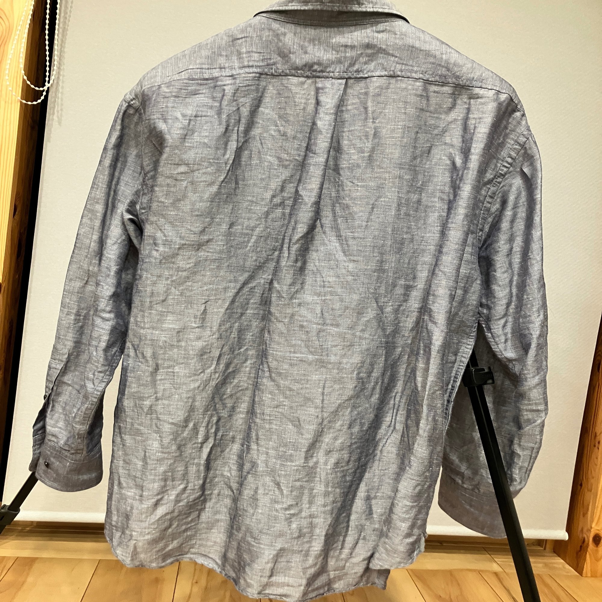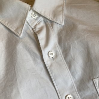 こちらはプレーンシャツが原型。当然ビッグシルエット。ボンファンティのコットンリネンシャツで、オールリネンよりカサついた素材感で洗ってもそこそこハリが残る。その辺の特性からデニスのリネンより清涼感強め清潔感強め。個人的にビックシャツでも襟は大きい方が良いかなぁと思っていたのでそういう点でもドークとは差別化できている。今年のGW一泊二日の旅行はこの一枚とアンスナムのドライパンツのみで通した。