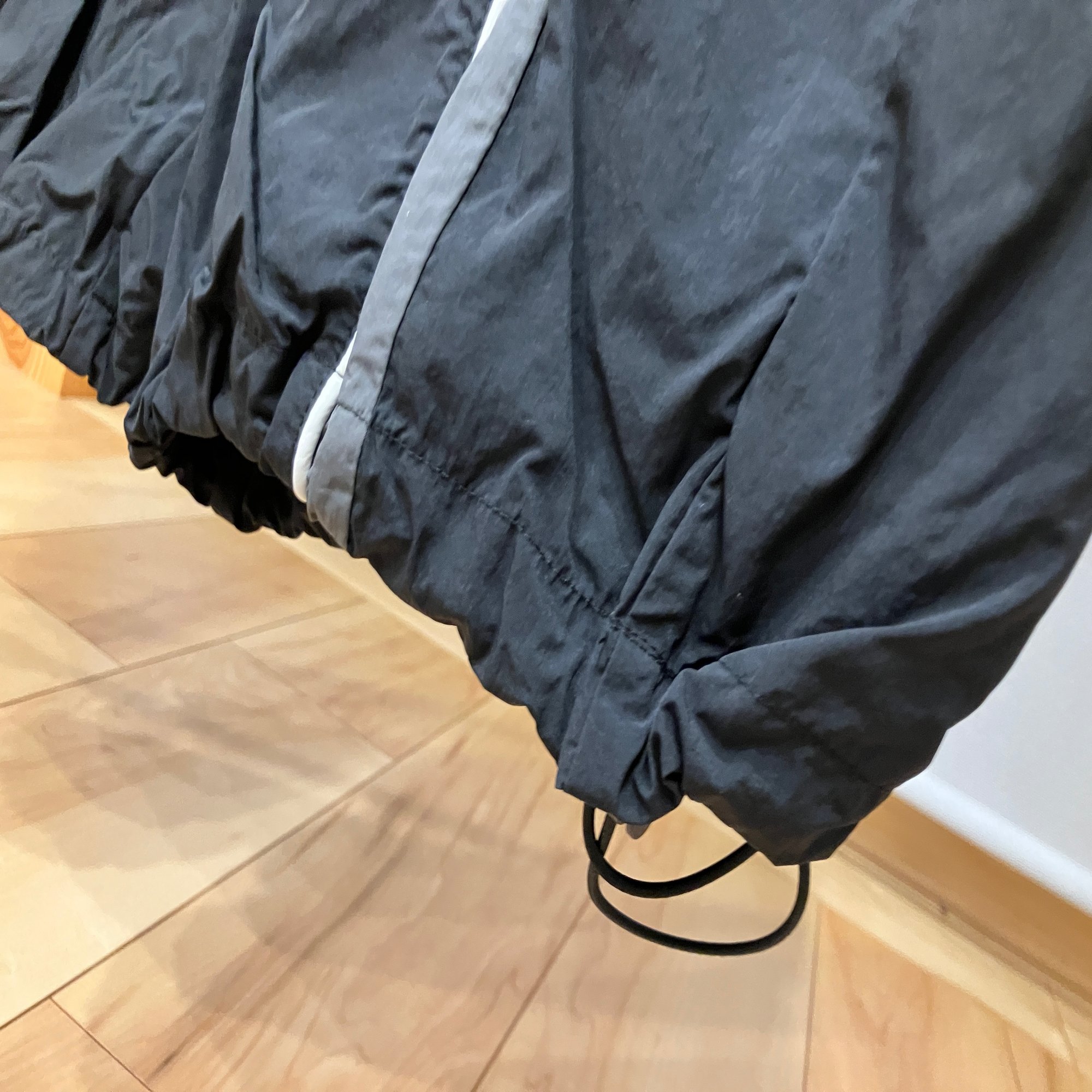 裾をずるずるに地面に引きずるのは現実的ではないので、裾のドローコードを調整しながら履いた。