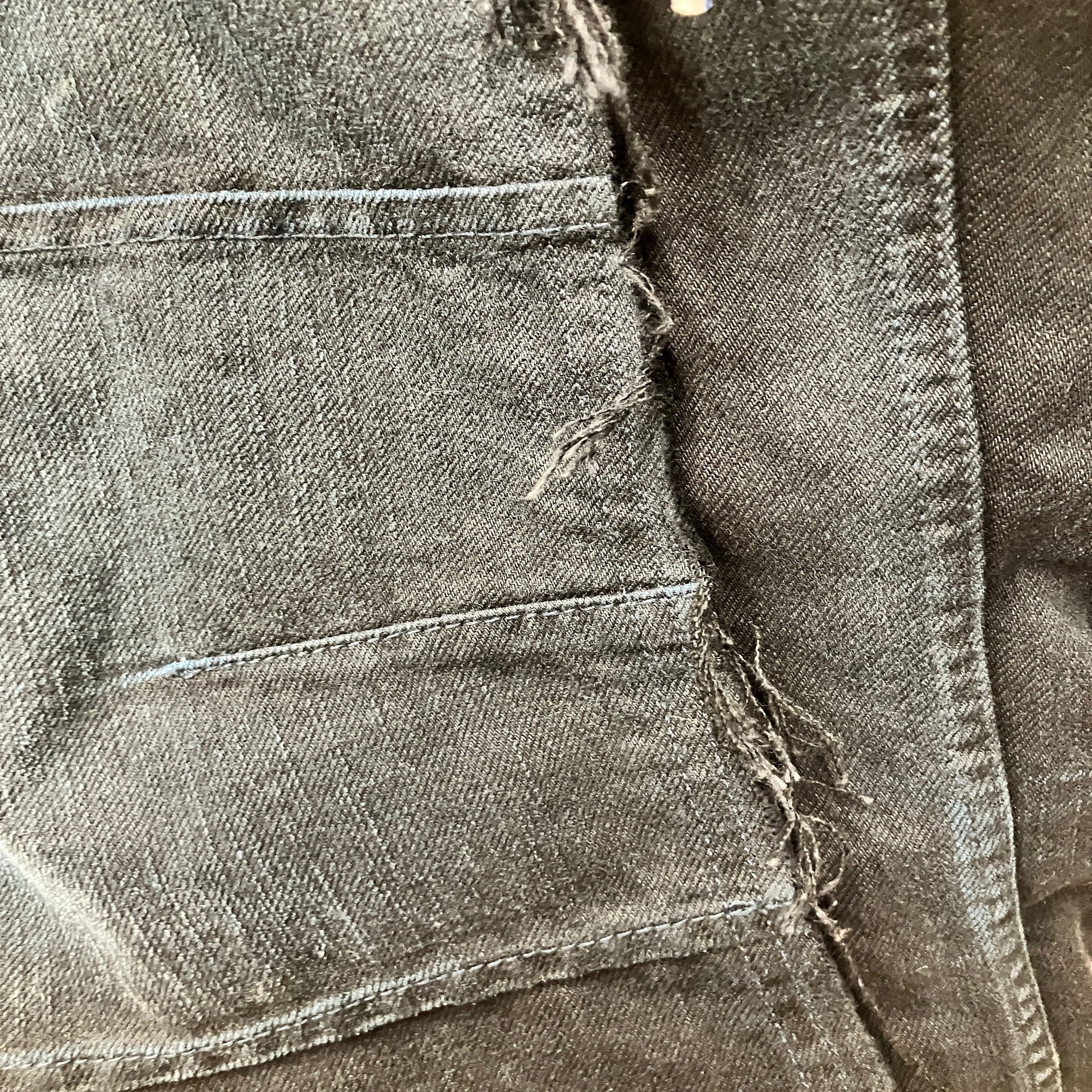ダブルニーパンツなので、フロントに同布が縫い重ねられているのだが、端が切りっぱなし。そのため履いていると小学4年生が初めて家庭科で作ったエプロンみたいにどんどんほつれて糸がピロピロピロピロピロピロピロはみ出してくる。