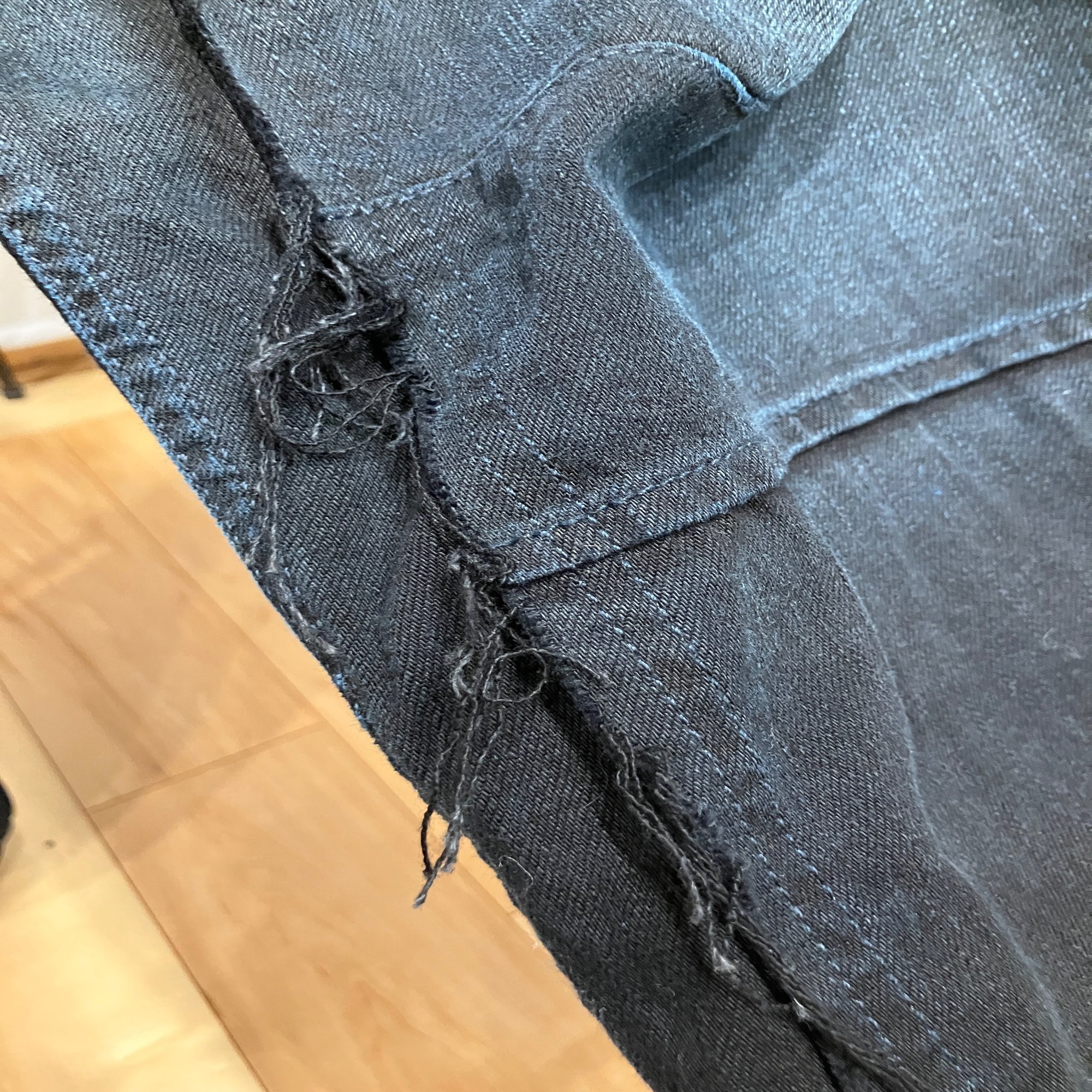 最近は多少落ち着いてきたが、相変わらず市井は色の抜けたワイドデニムパンツを履く者で溢れている。そういう私も一昨年クリスタセヤのデニムトラウザーで色落ちデニムデビューした。所有してしばらくお付き合いしていくと、ウエストの緩さと股上の長さのバランスだったり、収納を1ミリも考慮しないケツポケの仕様だったり、クリースが一度洗ったら完全に消滅するも生地の厚さにより付け直しが困難であったりと、まぁ色々気になっちゃったので残念ながら別々の道を歩むことにした。