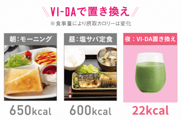 ※夕食カツカレーの場合の摂取カロリー1252kcalをVI-DA(8g)22kcalに置き換えて計算