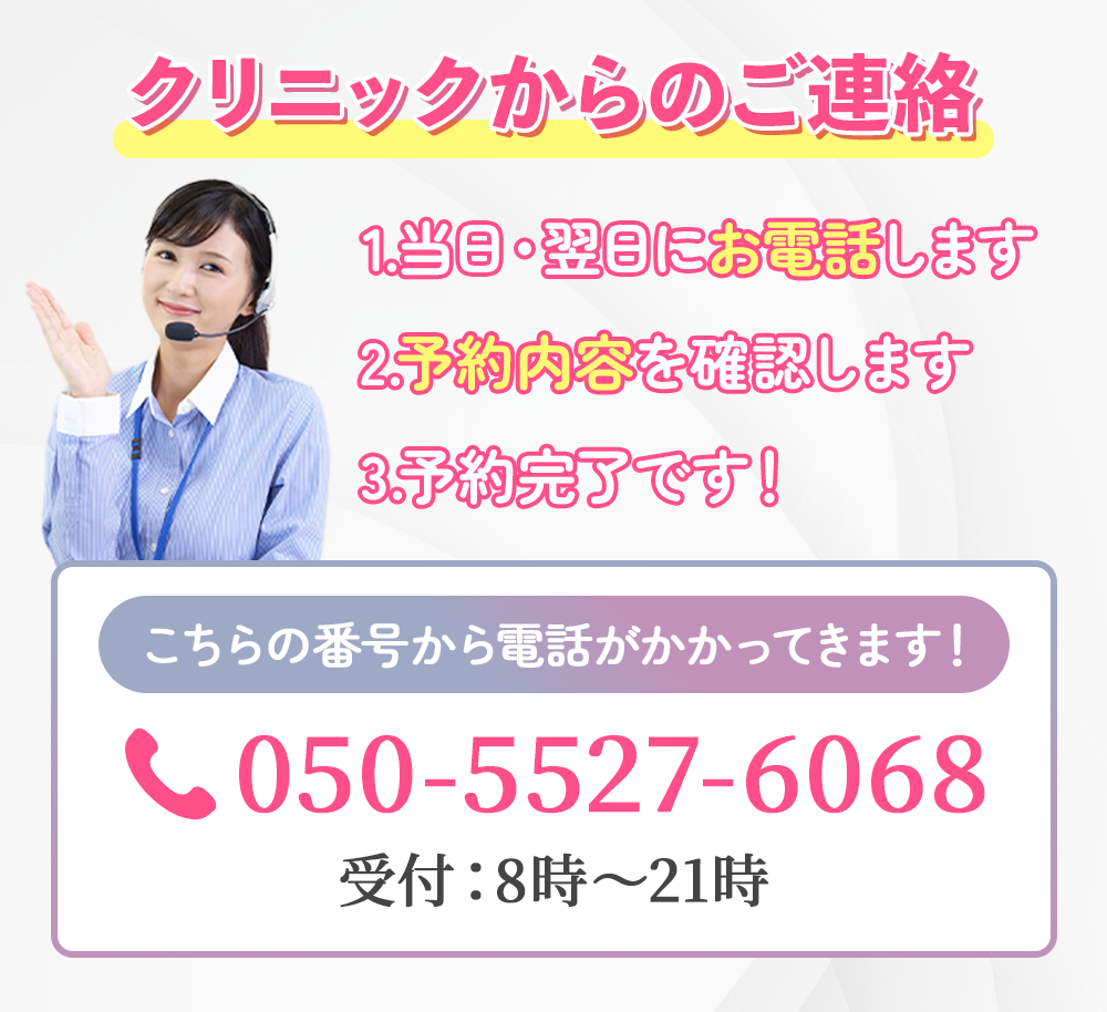 A.クリニックからの予約確認電話にて確認できます。