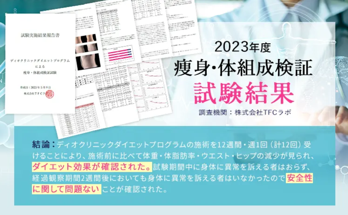 ディオクリニックは、試験結果で効果が認められたプログラムをご用意しております。そのため、ご希望に沿った部分痩せを目指せます。
