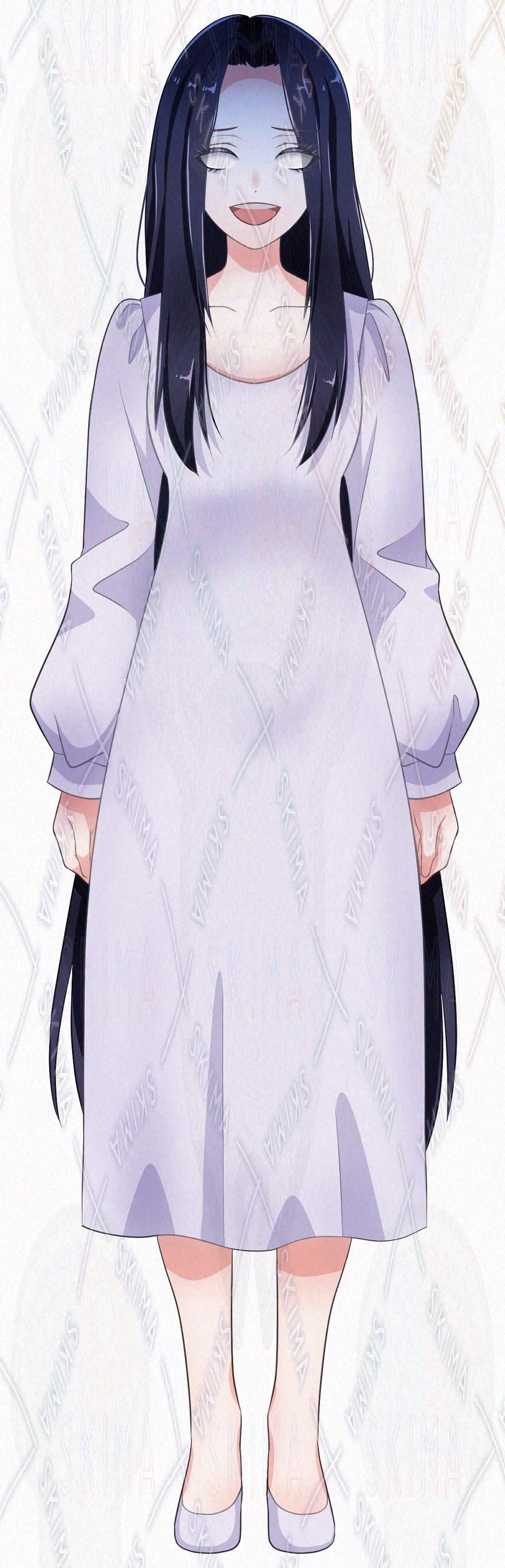 (女の子 少女 ホラー 怖い 幽霊 おばけ 妖怪 白 ワンピース ロングヘア 黒髪 三白眼 クマ 人魂 IRIAM)