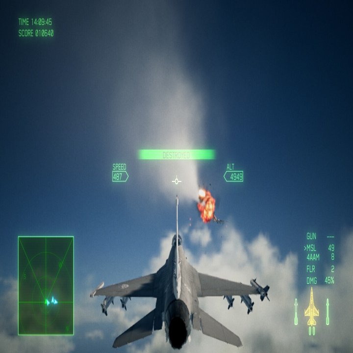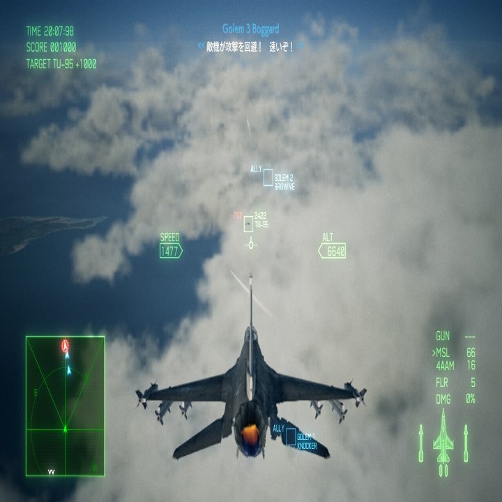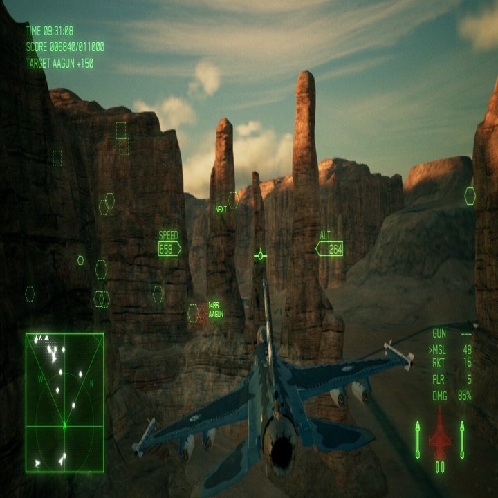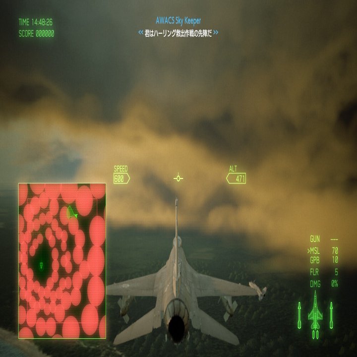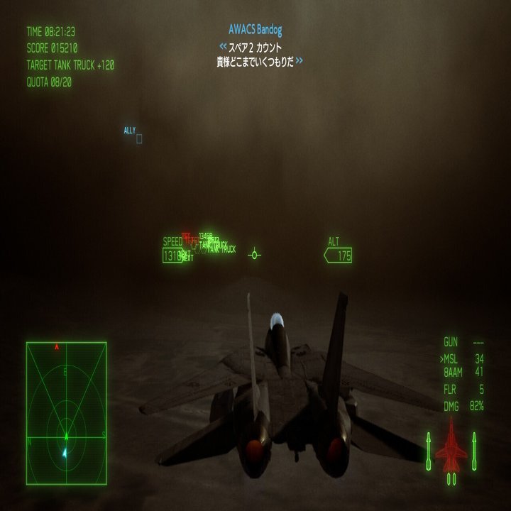 それからもう一点が、シナリオに関わる部分として、敵機のほとんどが「無人機」という設定である。敵はこれを活かし物量で攻めてくるため、レーダーは敵機の表示に埋め尽くされ、ターゲット切り替えも煩雑になり狙い通りの敵にロックオンさせるには経験とコツを積むしかない。さらに、無人機は操縦者への負荷を考慮しなくて良い、という設定からか、そのどれもが高速かつ急旋回の挙動でこちらを翻弄する。背後を突いたと思えば急落下し、こちらが再び機首の軸合わせをする頃には遥か彼方へ、という展開は、幾度となくあった。