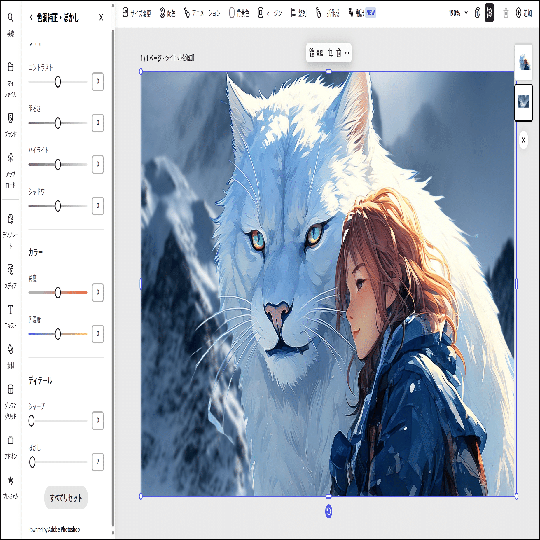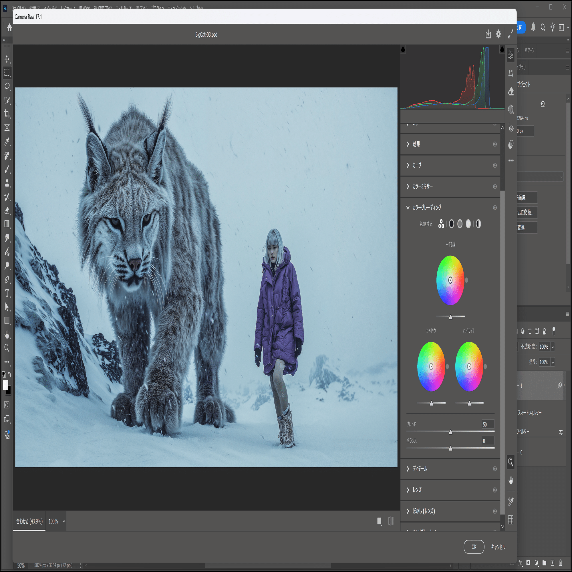 Photoshopで生成画像の色調補正やハルシネーションの修正。