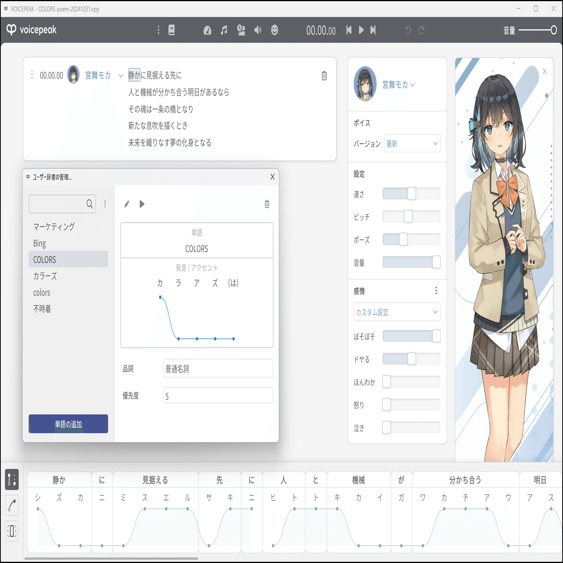 今回使用したのは、キャラクターシリーズの「宮舞モカ」。