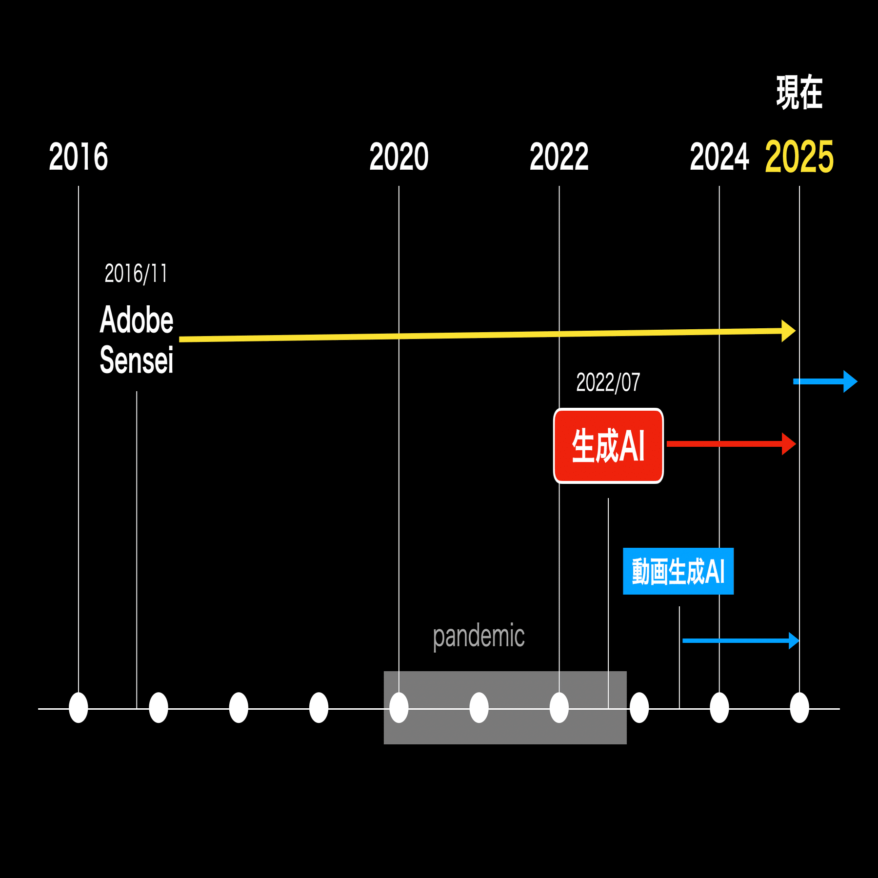 2016年11月からスタートした「AIクリエイティブ」は8年、生成AIに注力してから2年経ちました。昨年は本業のInstructional Designを「0」、生成AIを「100」にして取り組んできましたが、2025年も継続していきます。
