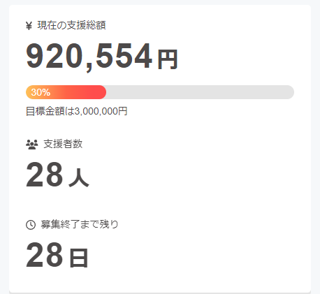 なんと開始3日で900,000円超もの資金が集まっています!!