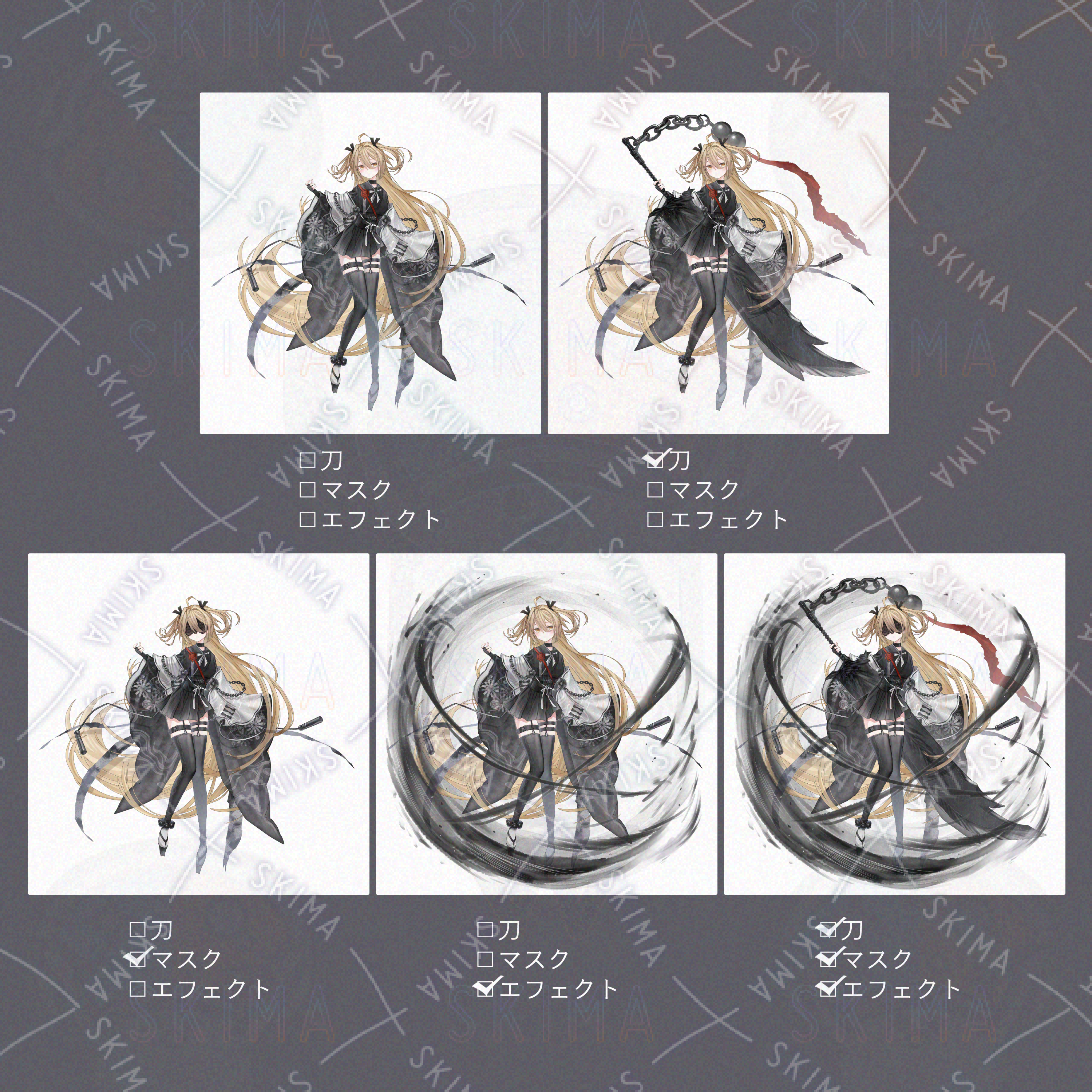 刀・マスク・エフェクトは立ち絵の上に重ねてお使いください。
