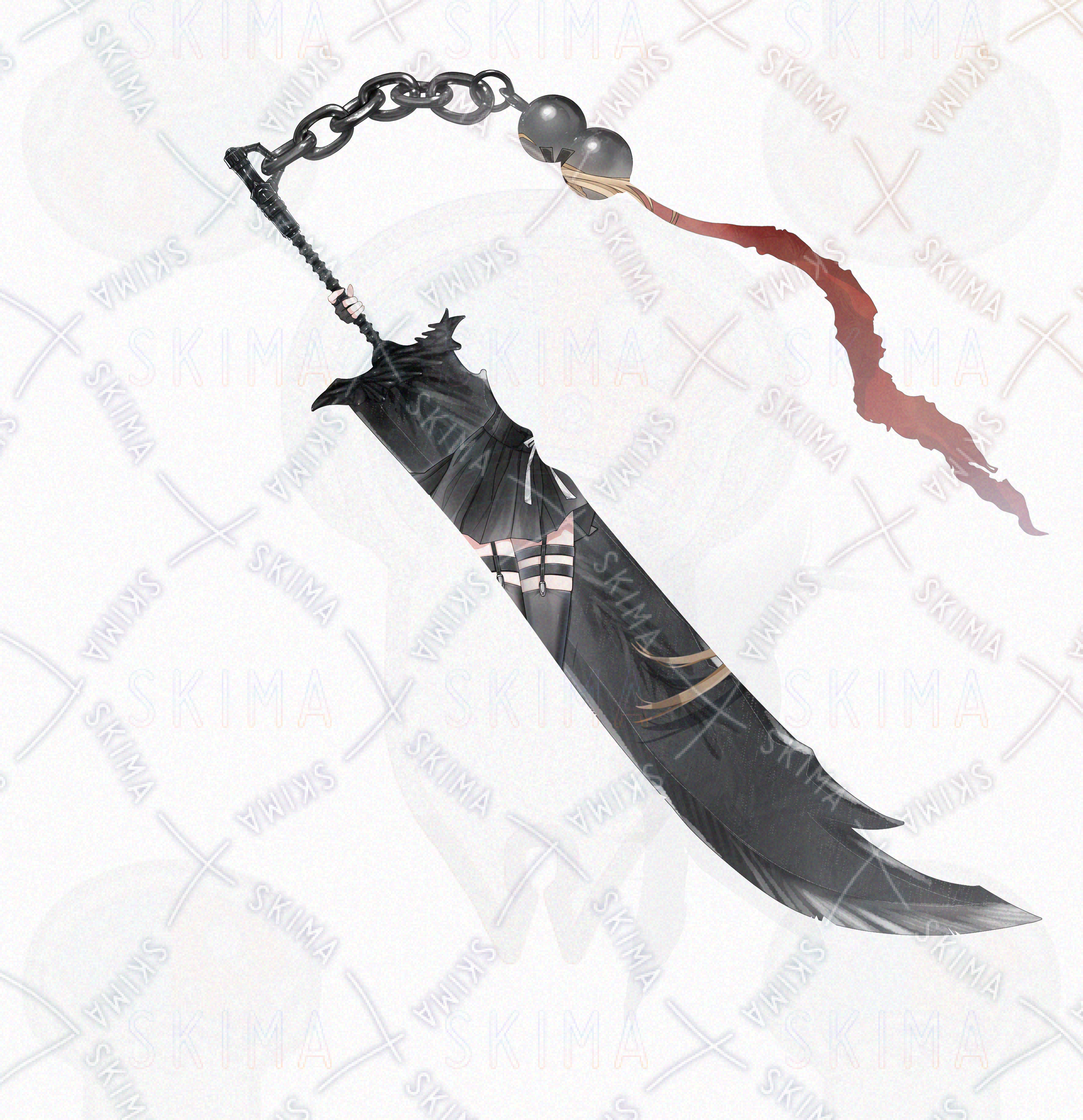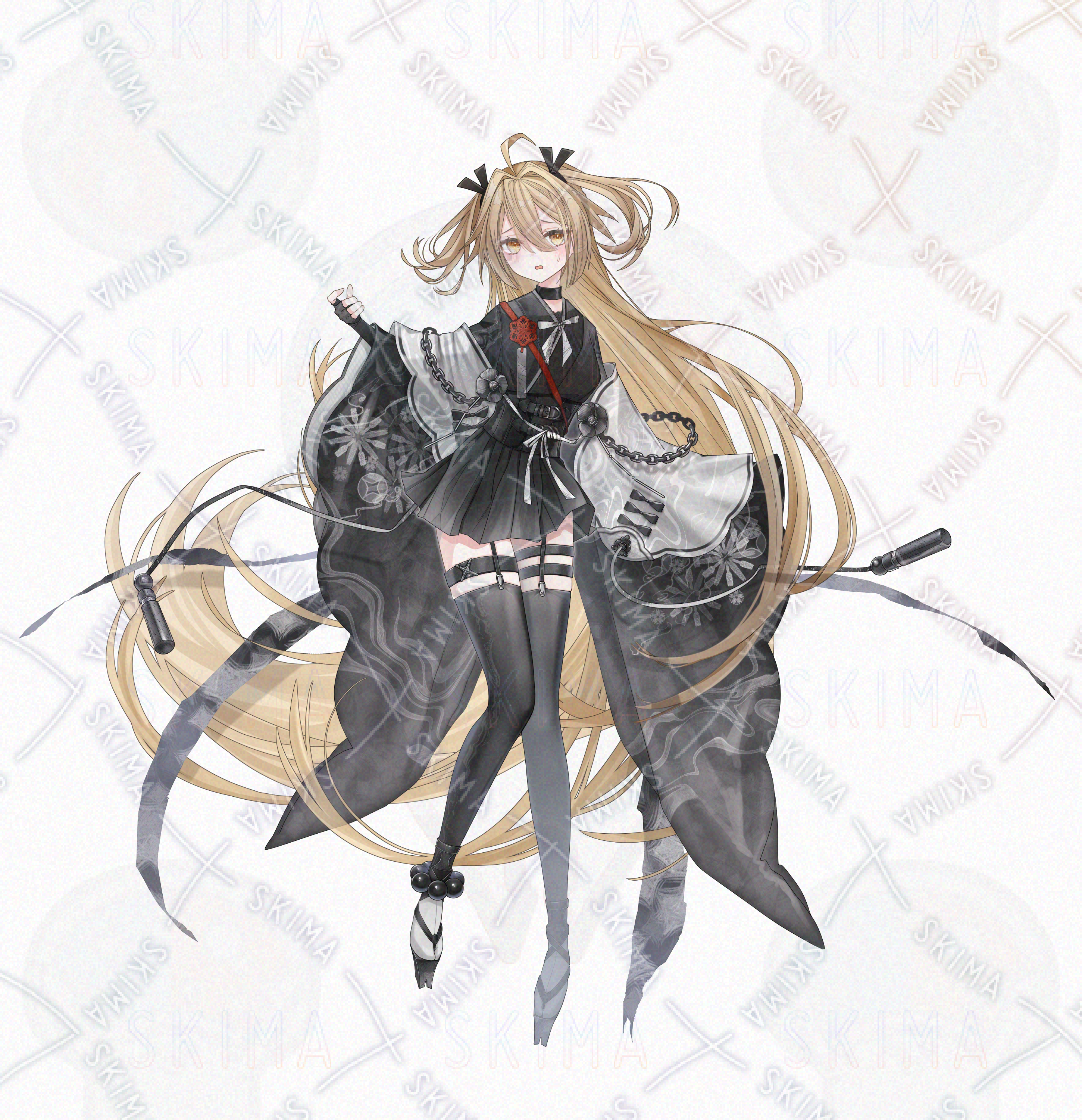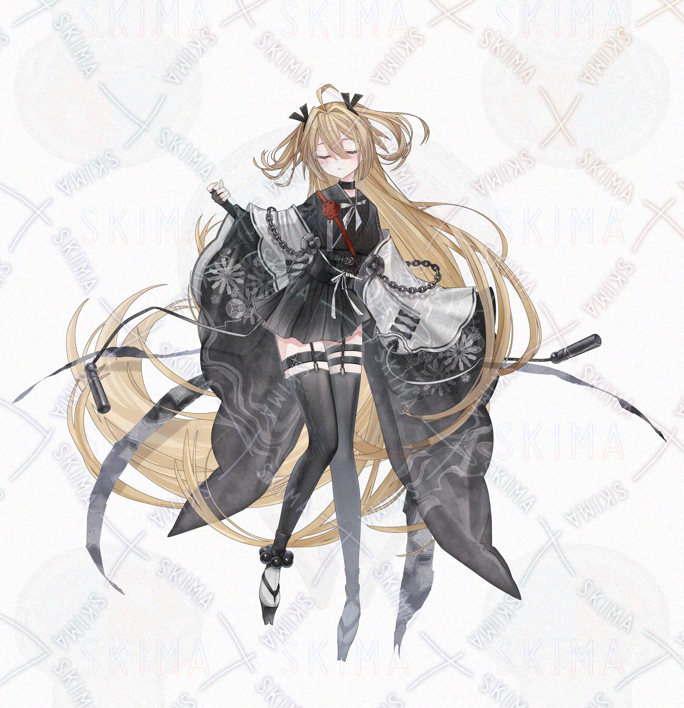 金髪/ロングヘア/ハーフツイン/マスク/和服/着物/刀/大剣/女性/女の子/少女/黒/白