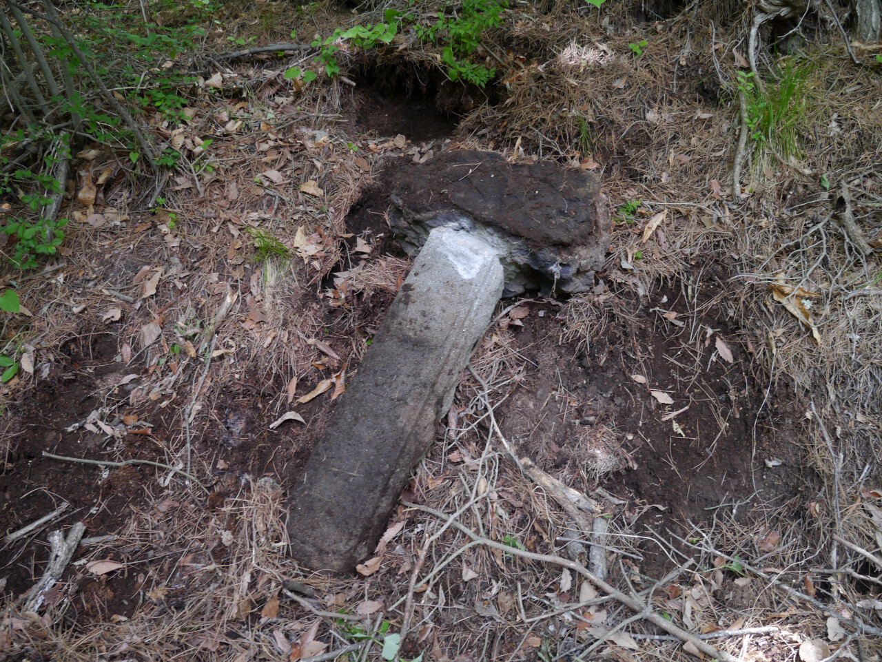 廿四丁の丁石 古道が無くなってしまっていた所を主催者の皆さんが刈りはらって道をつけて通れるようにしてくれてありました 古道の証拠として丁石が埋まっていたのを参加者の力自慢数名でひっくり返して廿四丁を確認しました