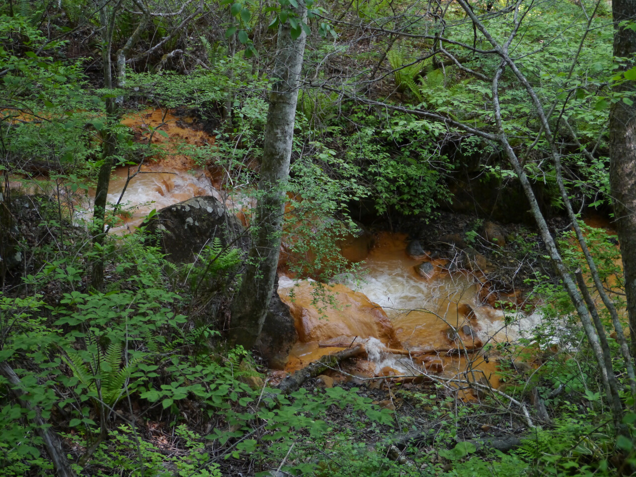 蛇掘川 水に鉄分が多いようで川底は赤くなってます