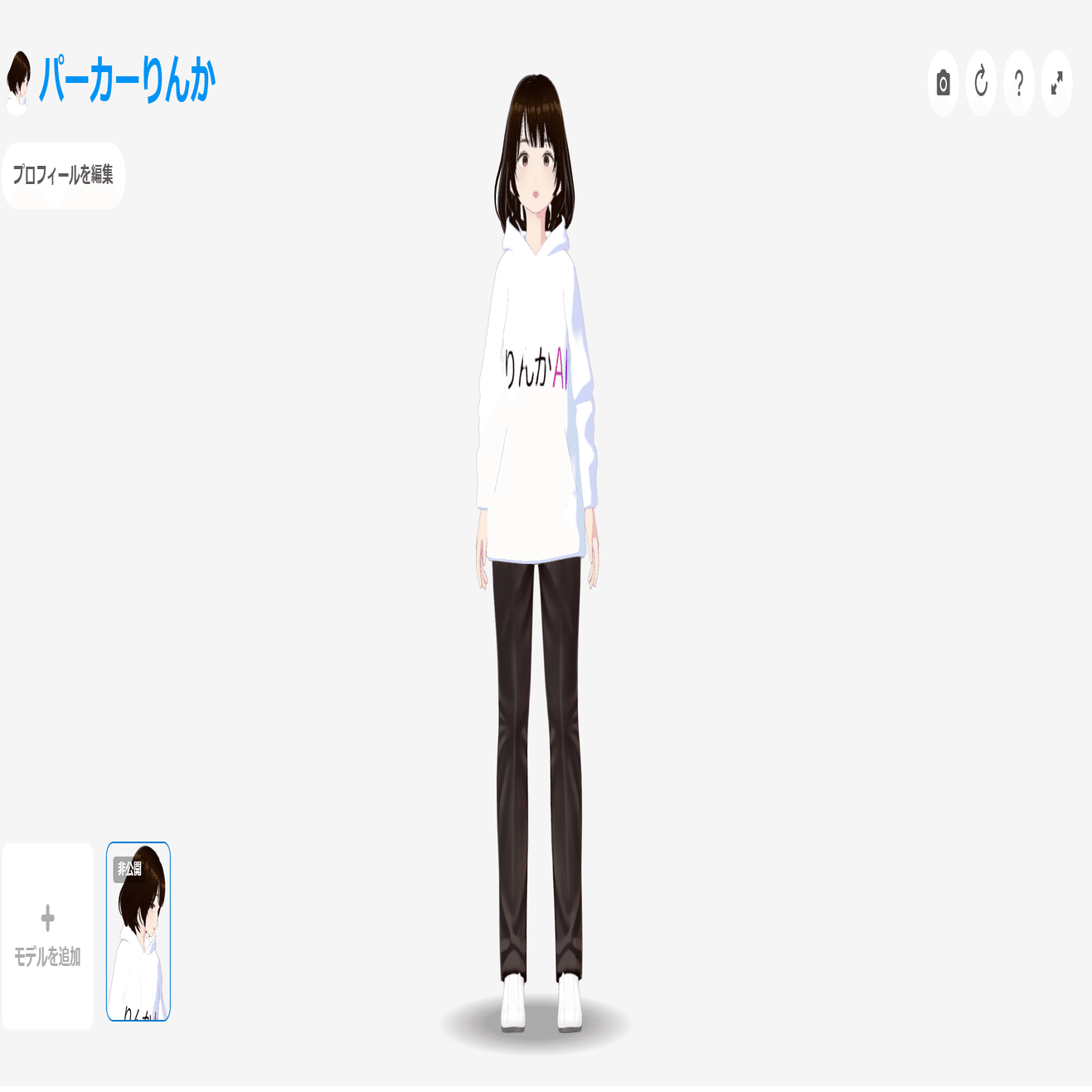 初回起動では、デフォルトの固定アバター(標準アバター)が表示されます。